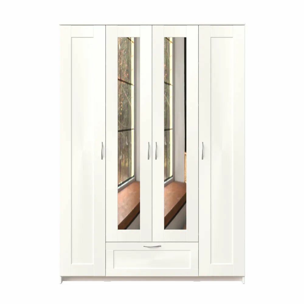 Шкаф четырёхдверный Гуд Лакк Сириус (1 ящик, 2 зеркала) Белый 47 651 ₽