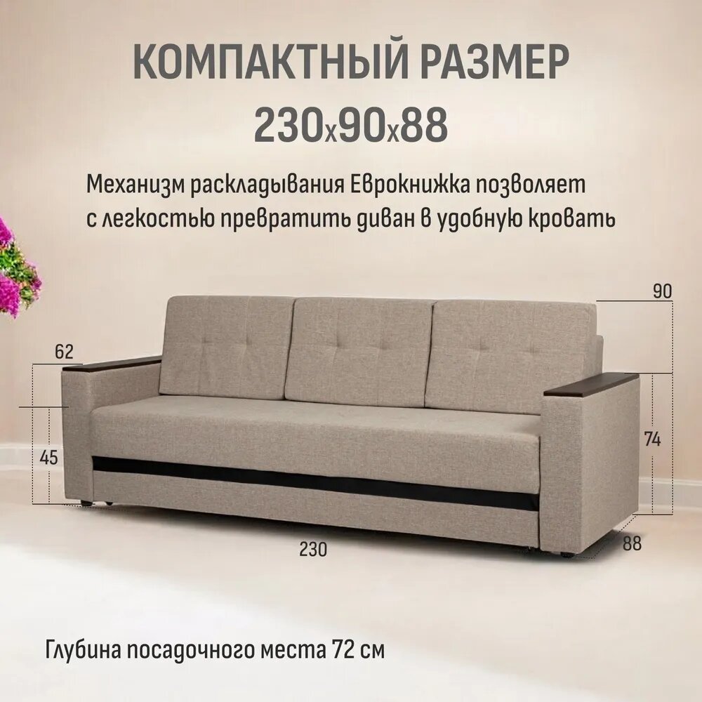 Диван-кровать "Мичиган" бежевый, рогожка, независимый пружинный блок, механизм Еврокнижка, Диван 24 информация: