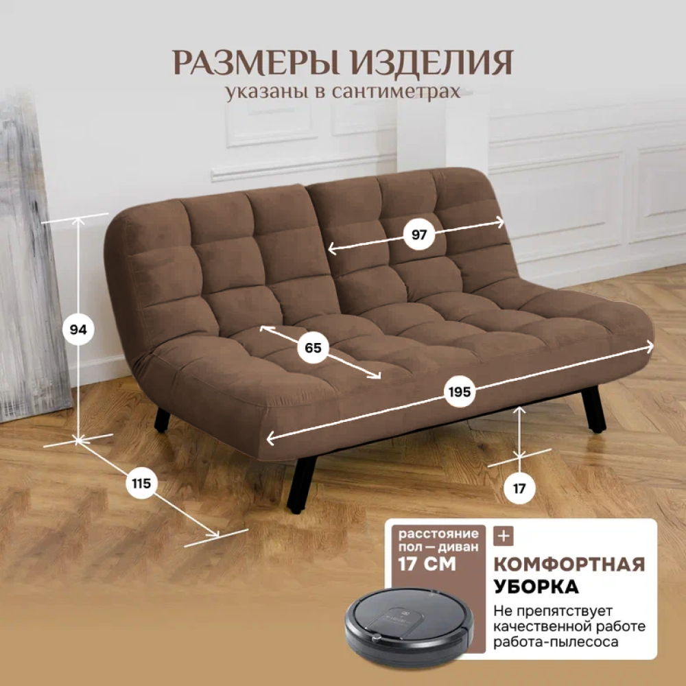 Диван-кровать Brendoss 304, прямой диван раскладной с двойной спинкой, клик-кляк, антивандальный велюр, цвет коричневый информация: