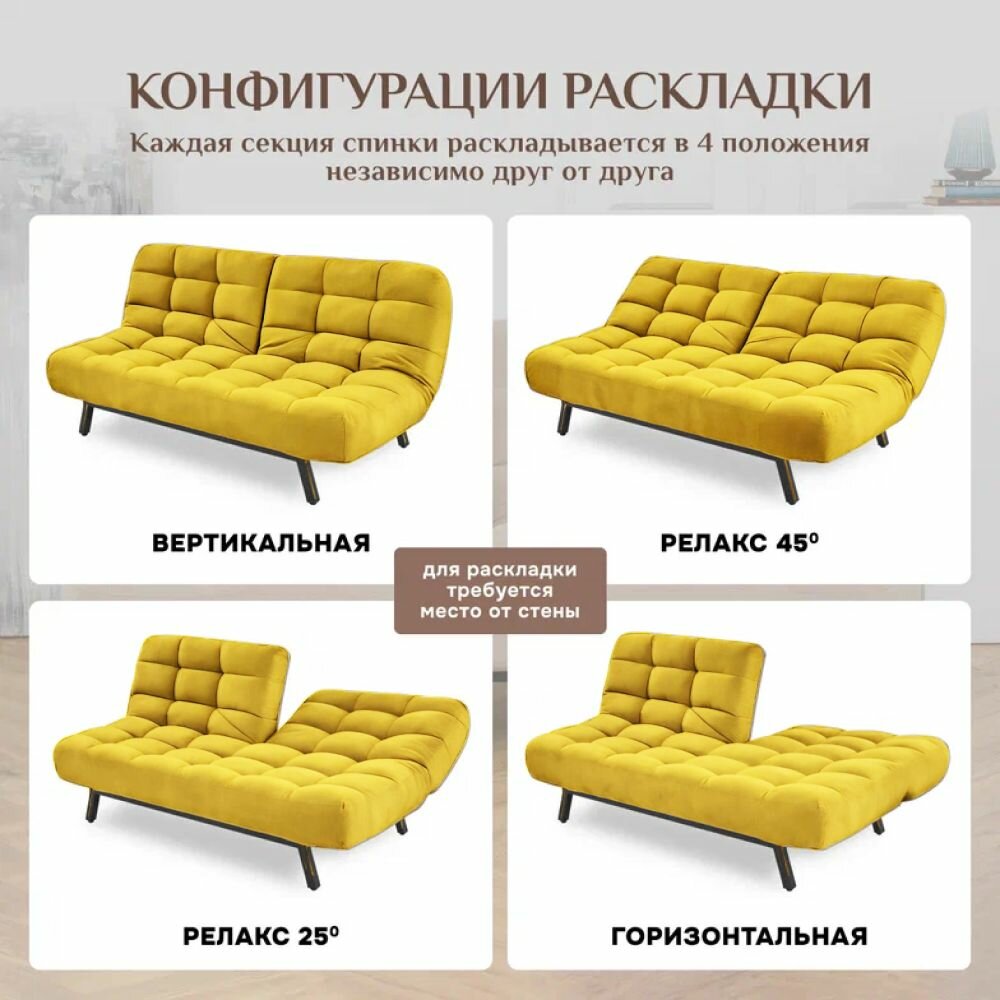 10 цен на Диван-кровать Brendoss 304, прямой диван раскладной с двойной спинкой, клик-кляк, антивандальный велюр, цвет желтый