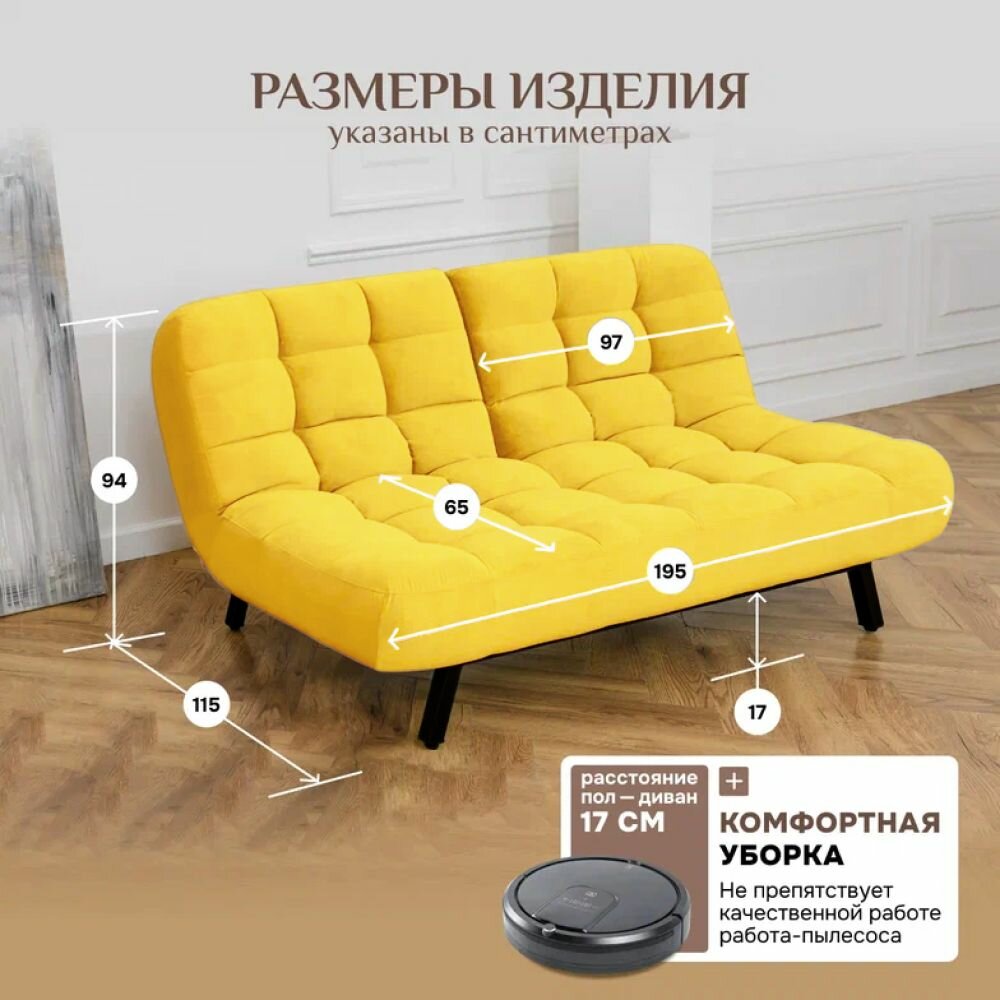Отзывы на Диван-кровать Brendoss 304, прямой диван раскладной с двойной спинкой, клик-кляк, антивандальный велюр, цвет желтый