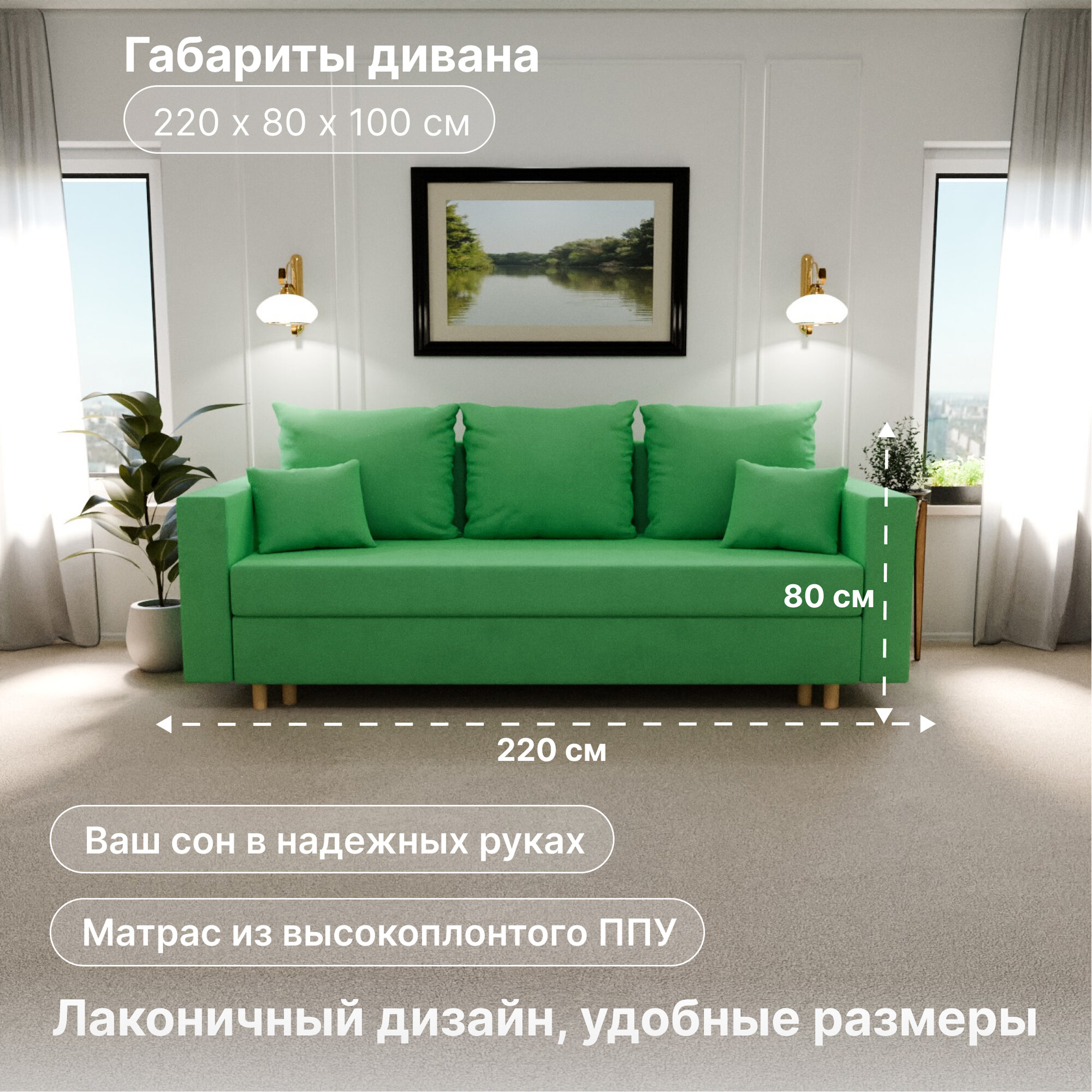 10 цен на Диван-кровать "Adam", YORCOM, ППУ, Велютта люкс 42, размеры 220х80х100, Зеленый