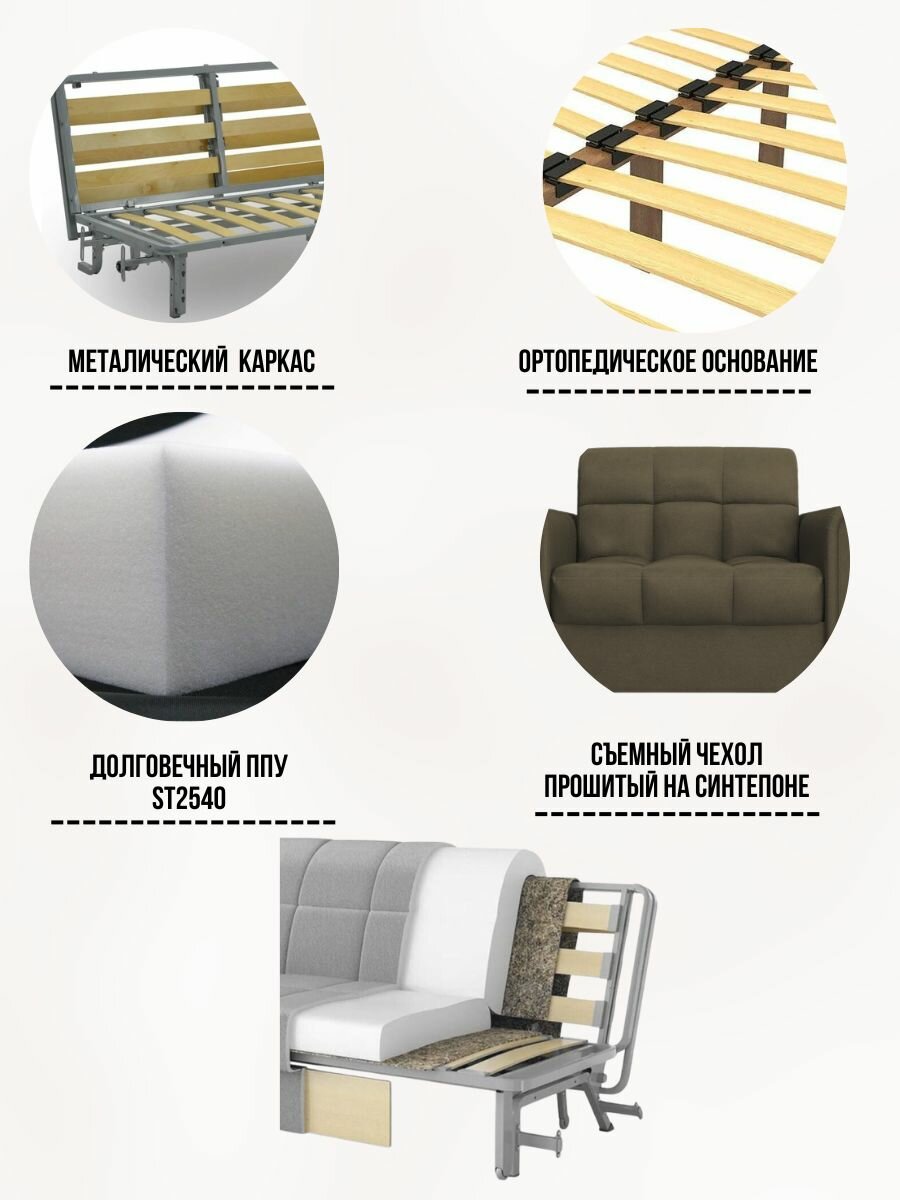 Кресло-тахта-шезлонг Akrobato 70 Инфинити Хаки (75 х 85 х 95, СМ 70х200) NoveltiRus раскладное, механизм Акробат, 5 положений, металлокаркас, ППУ+латы