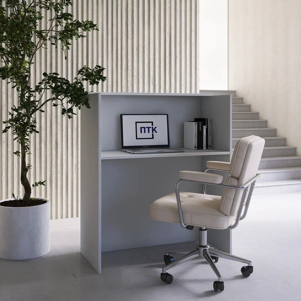Отзывы на Стойка ресепшен, кассовый стол для администратора "Шоурум", 1080x900x450 мм, Светло-серый