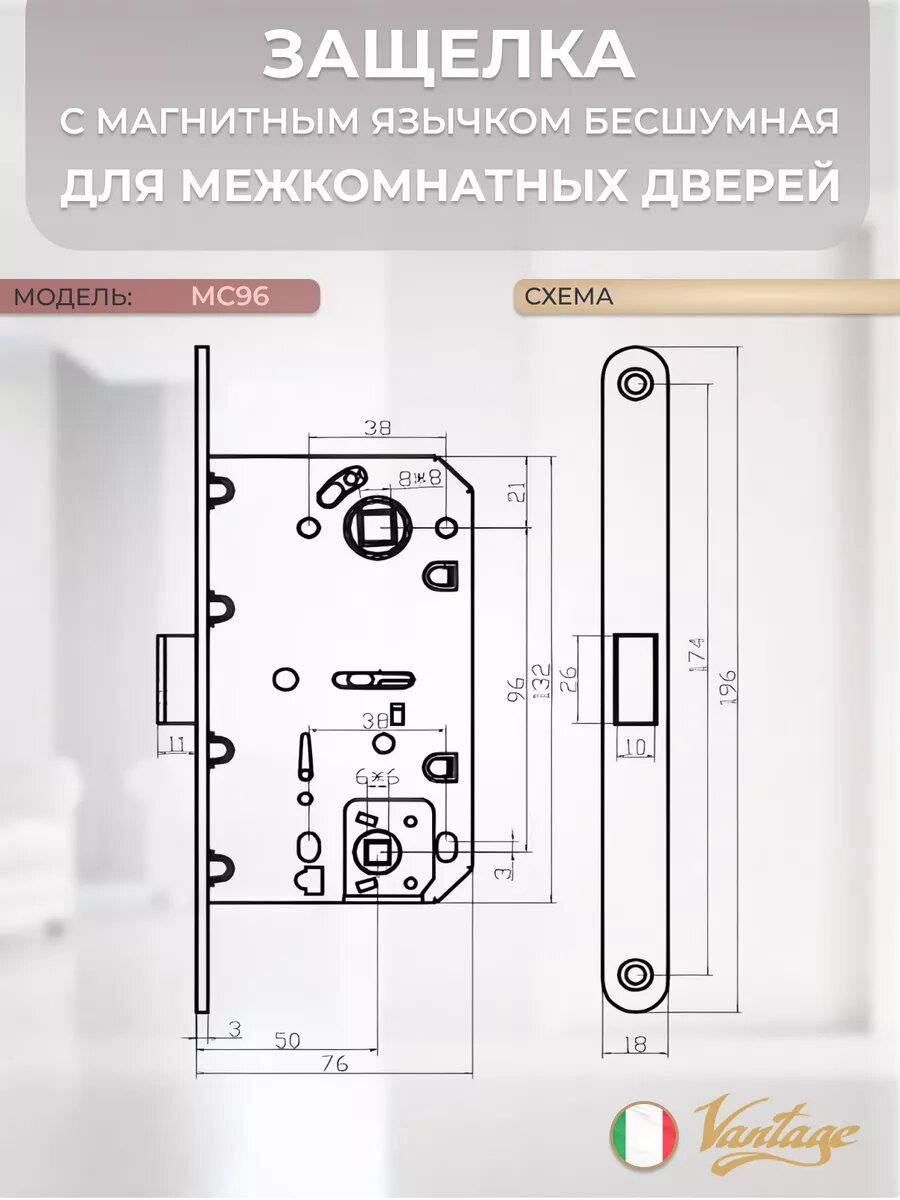 Защелка сантехническая, межкомнатная магнитная Vantage MC96 CP (хром)