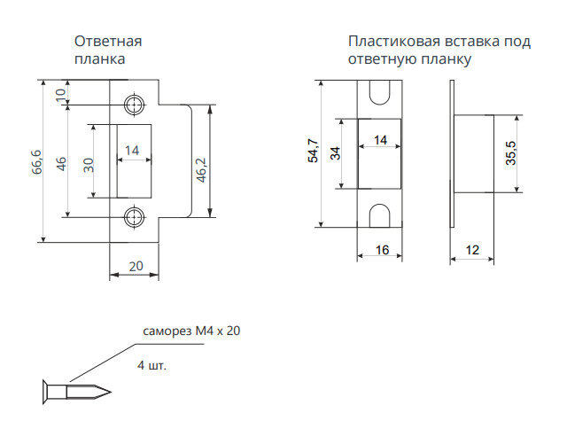Накладная защелка мебельная (шпингалет), 16х71 мм, никель, 2 шт.