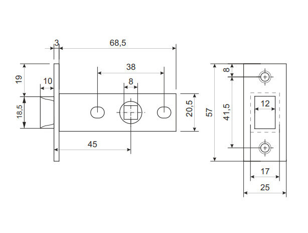 Защелка дверная межкомнатная черный магнитная L3085 BLACK под цилиндр PALIDORE