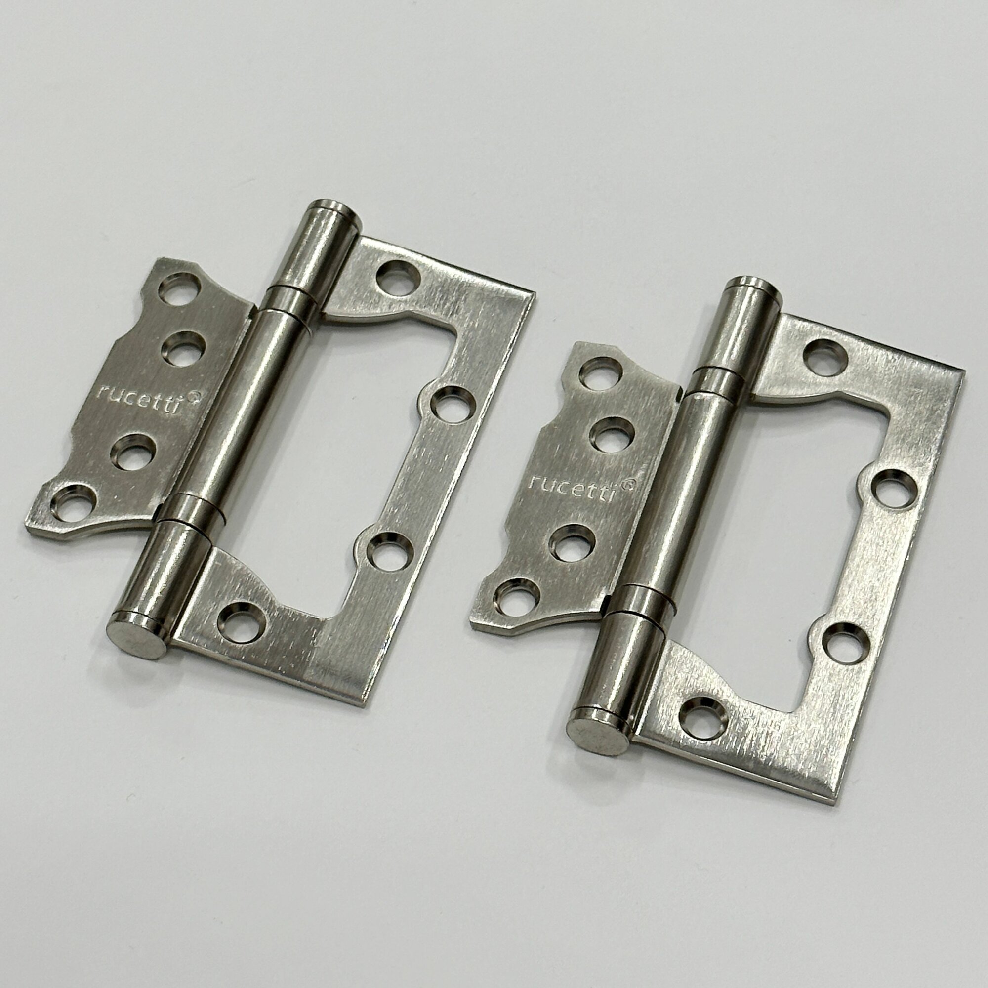 Петли дверные Rucetti без врезки RFH-100*70*2.5 SC матовый хром, комплект 2 шт. универсальных петель, петли металлические накладные для межкомнатных дверей