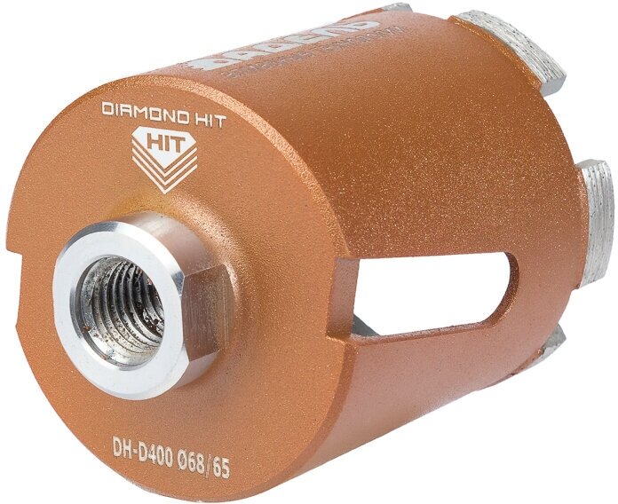 Коронка алмазная DIAMOND HIT для подрозетников DH-DE400 68 мм с торцевыми прорезями для удаления пыли
