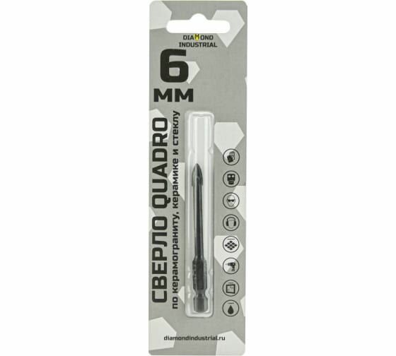 Сверло по керамограниту, керамике и стеклу 6 мм, 4 грани Diamond Industrial 2 шт информация: