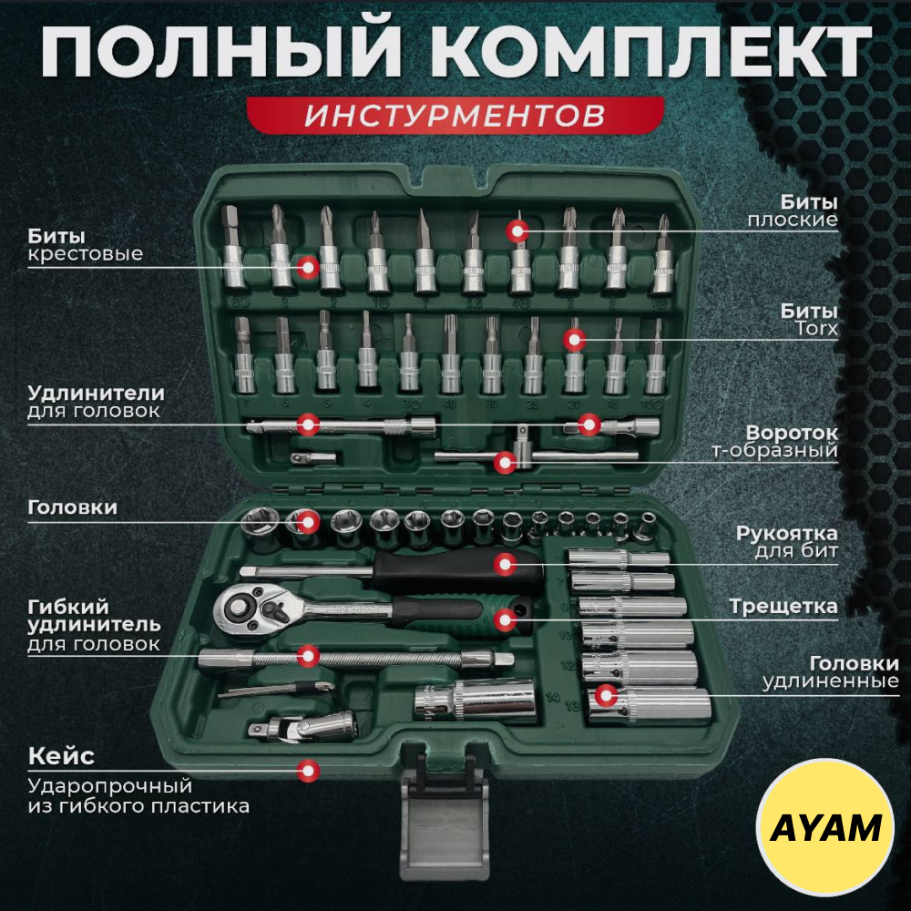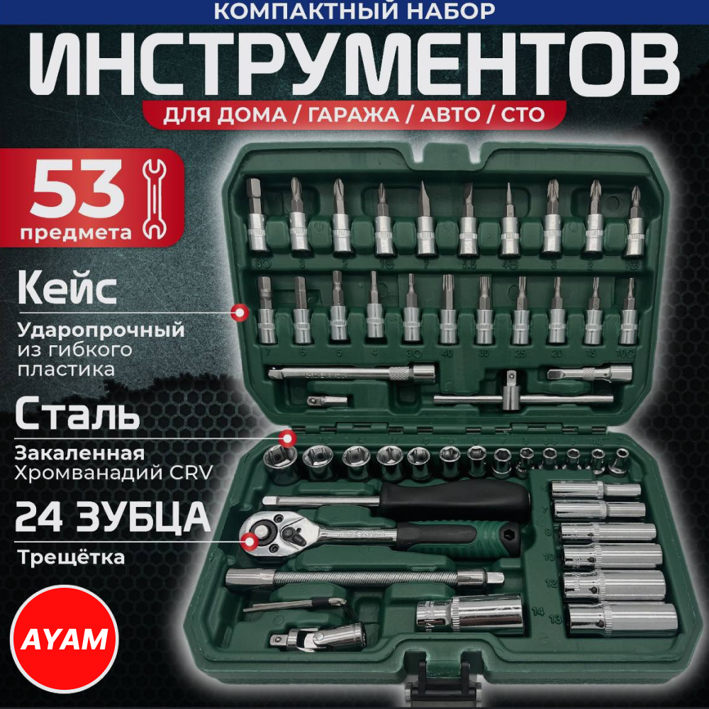 Отзывы на Набор инструментов Автохит, 53 шт, в кейсе, биты, головки, со вставками