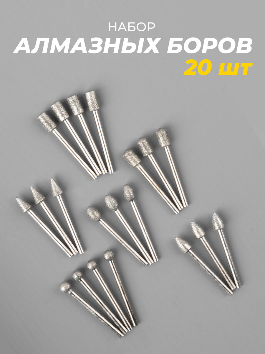 | Подробная комплектация | алмазные боры - 20 шт |