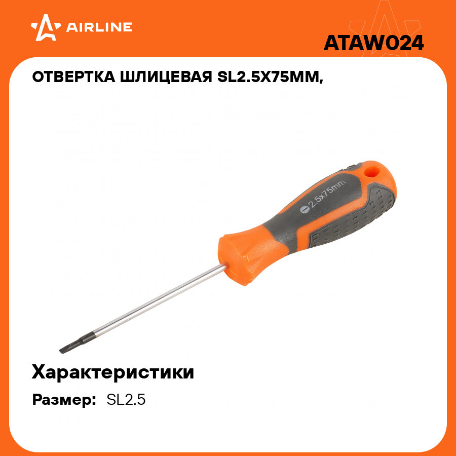 Отзывы на Отвертка шлицевая SL2.5x75мм, магнитный наконечник, пласт. подвес ATAW024 AIRLINE