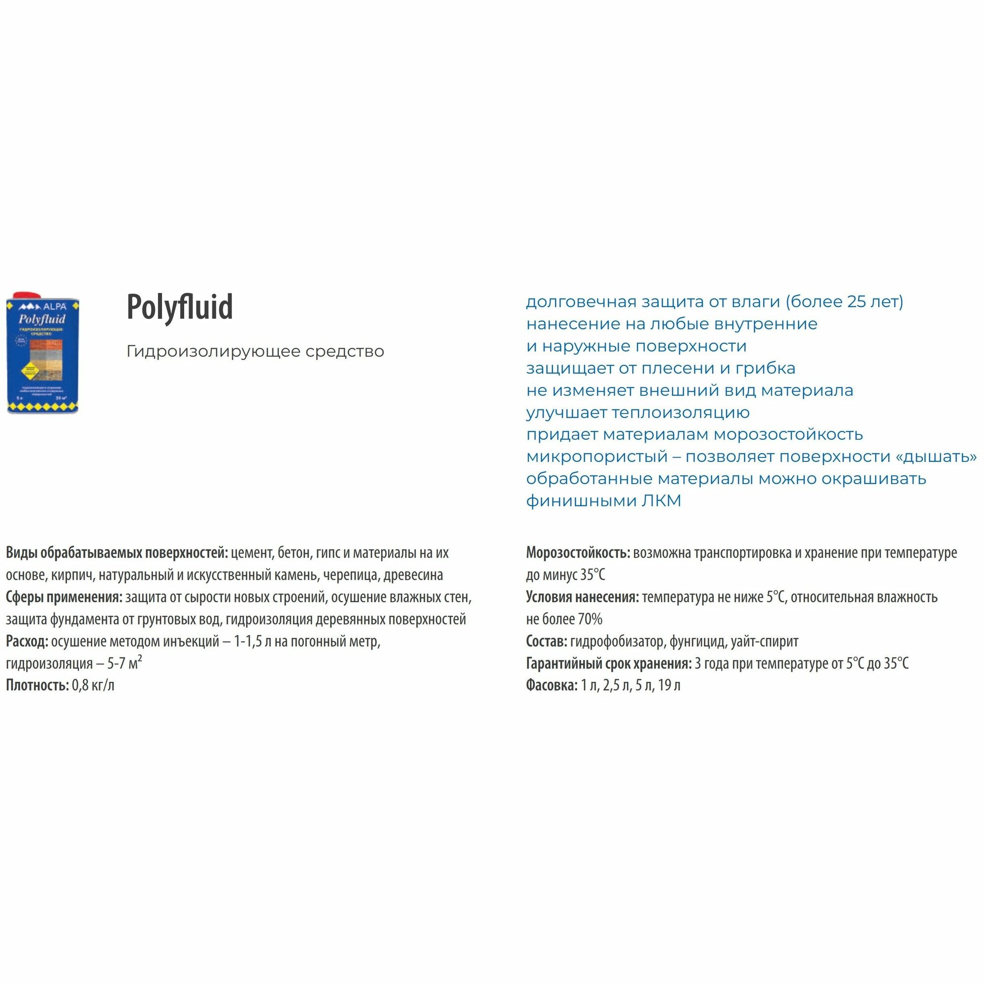 Средство для гидроизоляции пропиточное Alpa Polyfluid (19л) информация: