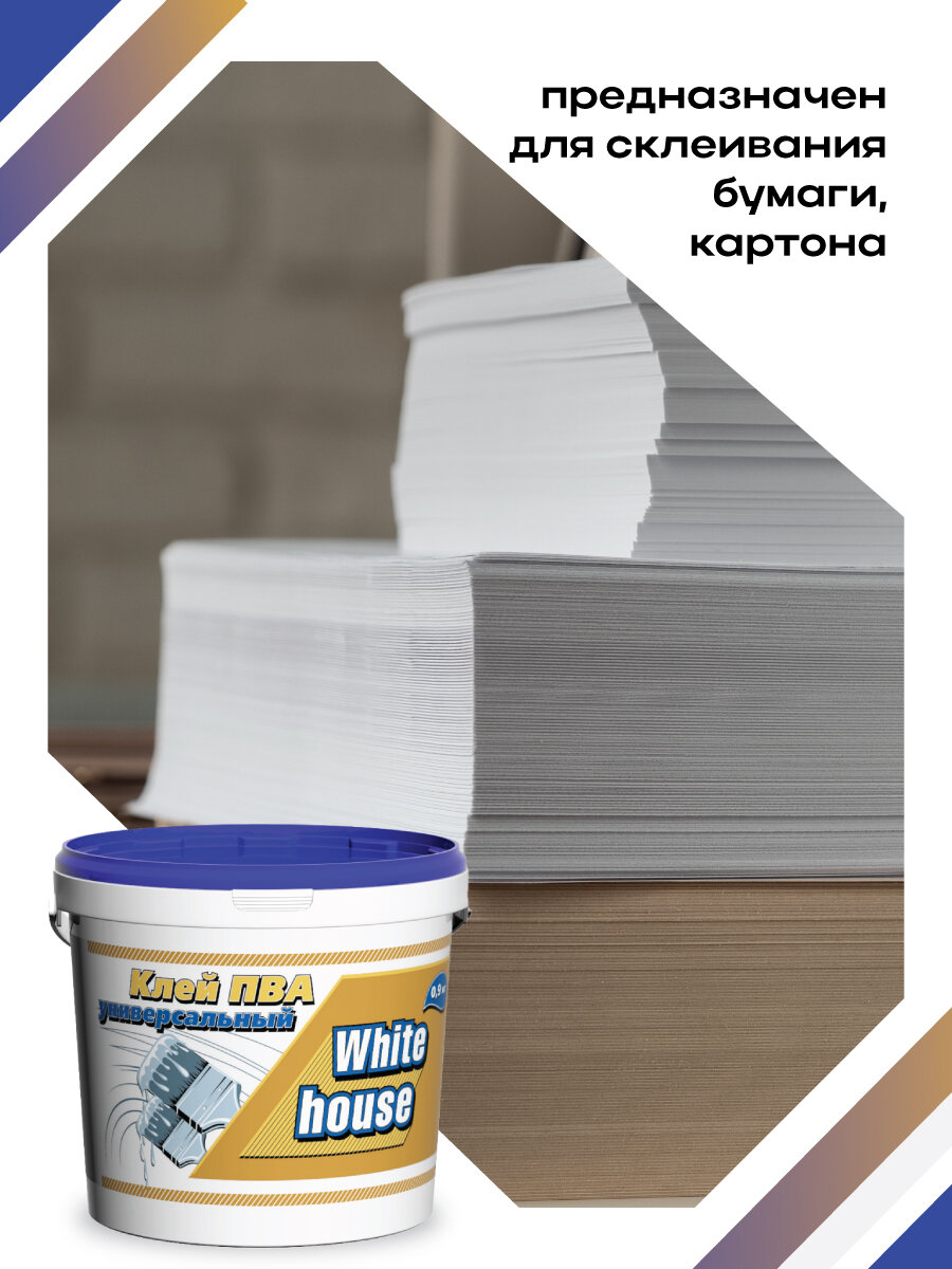 Клей ПВА WHITE HOUSE, универсальный, для бумаги, дерева и картона, 900г информация: