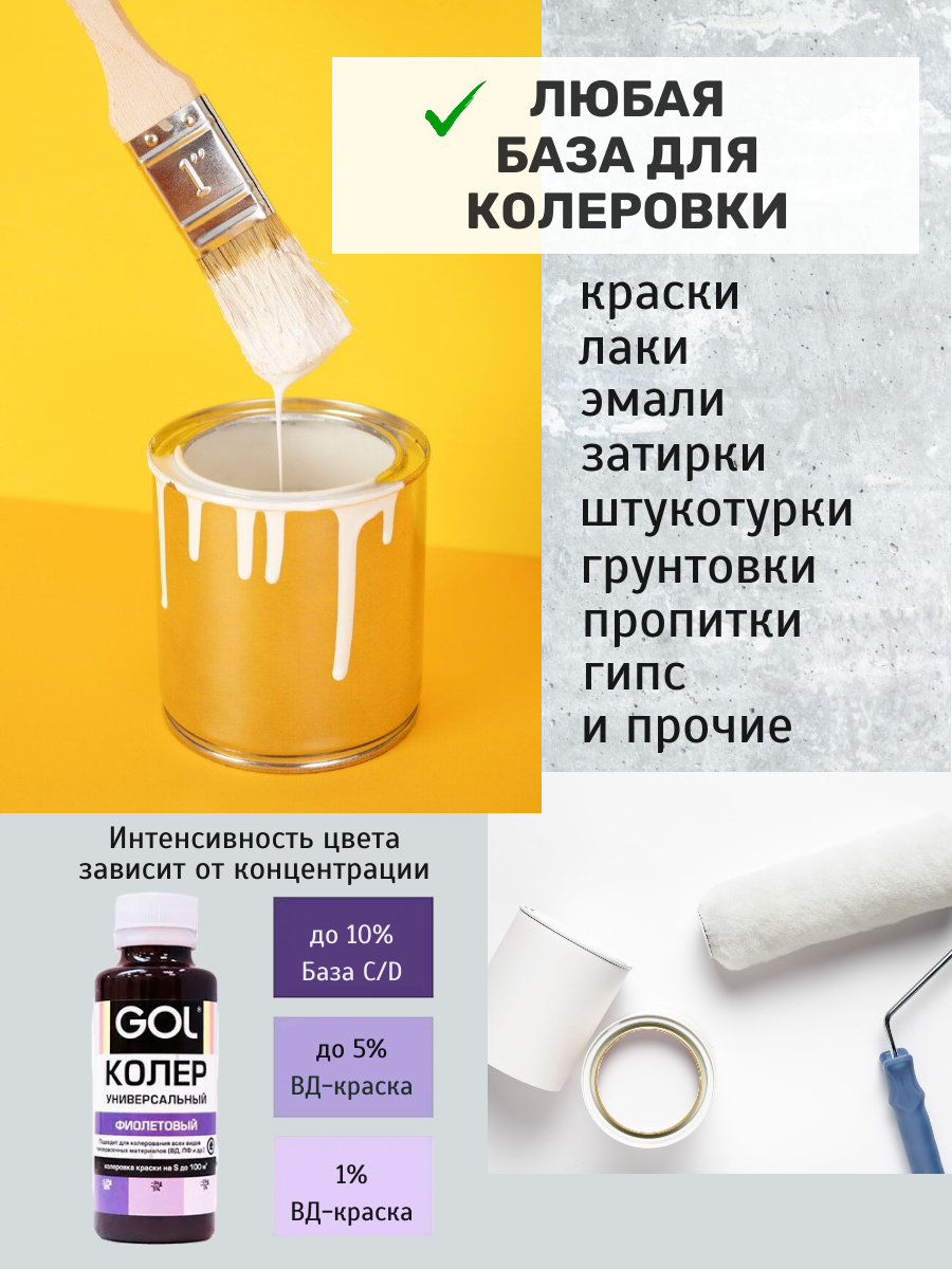 Набор колер для краски фиолетовый универсальный GOL для гипса, лака, эмали, штукатурки, затирки. 2 шт. информация:
