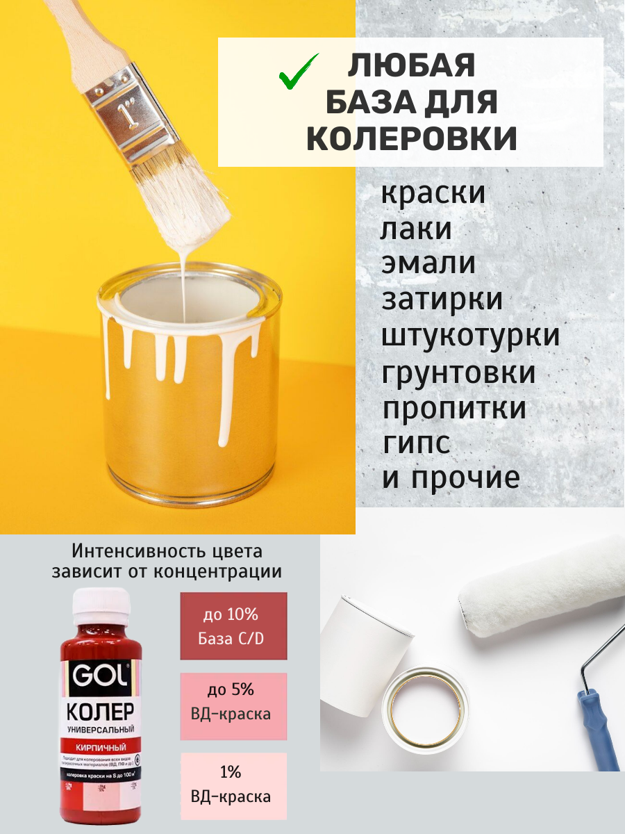 Набор колер для краски кирпичный универсальный GOL для гипса, лака, эмали, штукатурки, затирки. 2 шт. информация: