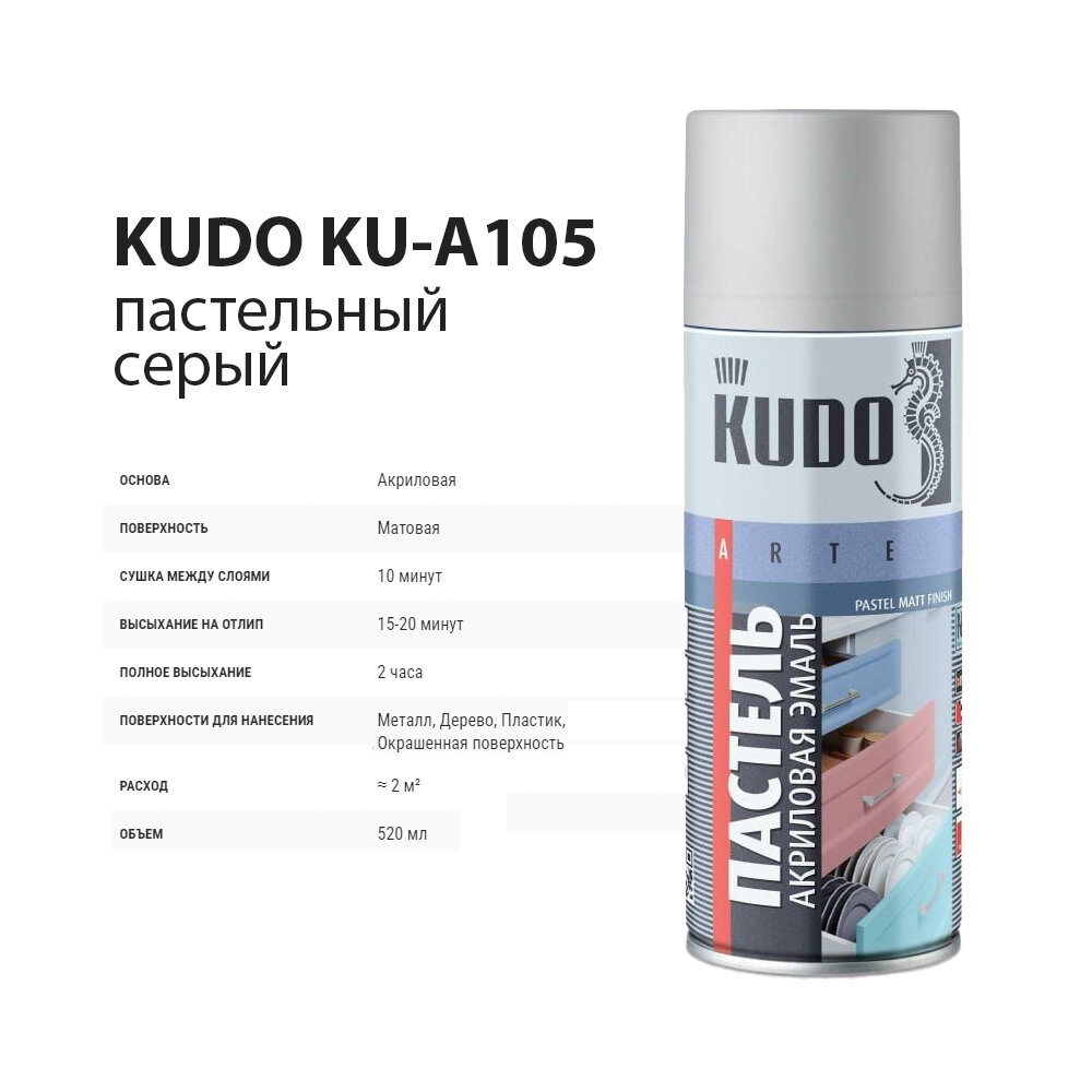 Аэрозольная акриловая краска Kudo KU-A105, пастельная, 520 мл, серая 451 ₽