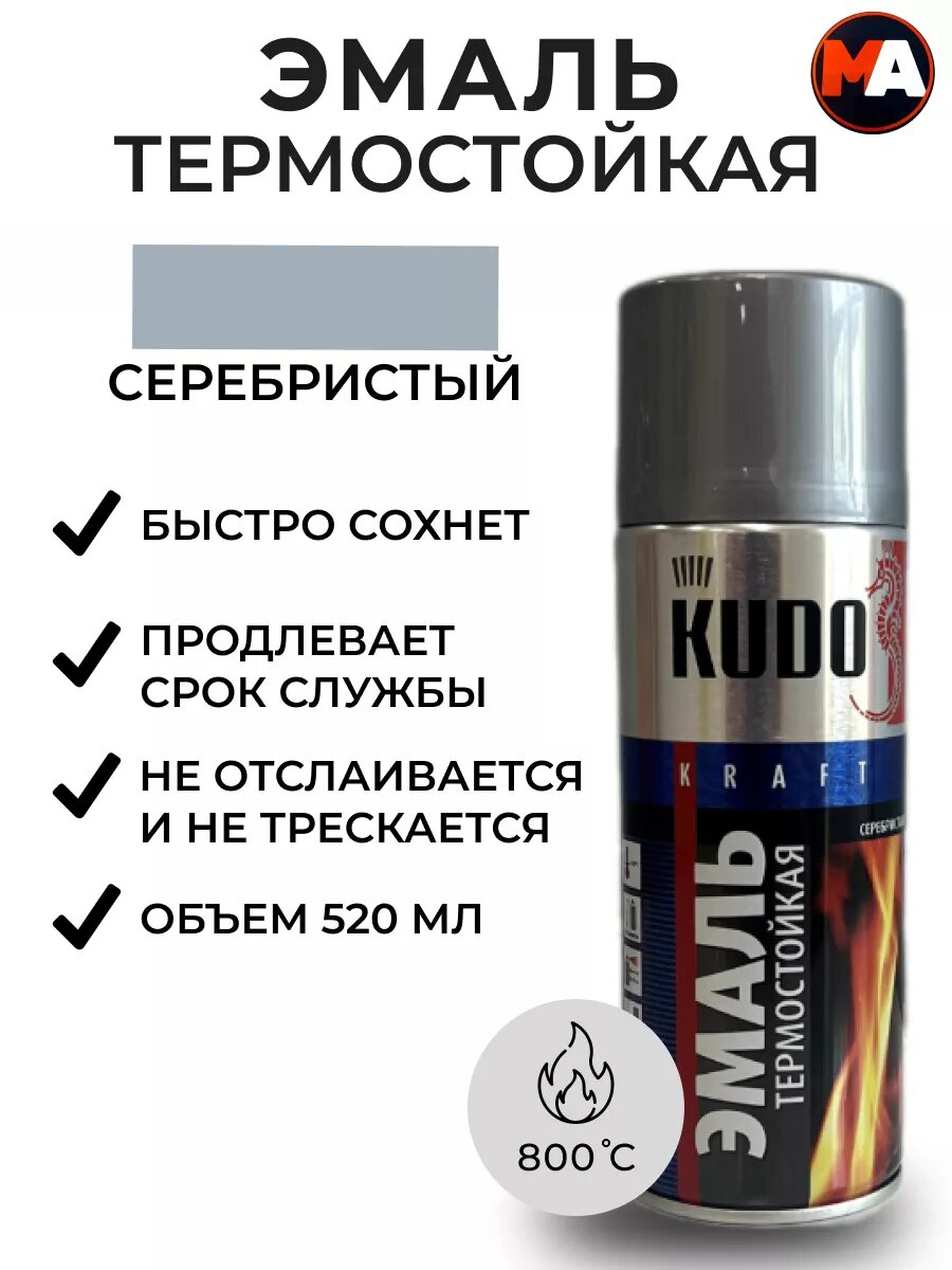Эмаль KUDO термостойкая, серебристая, быстросохнущая, универсальная информация: