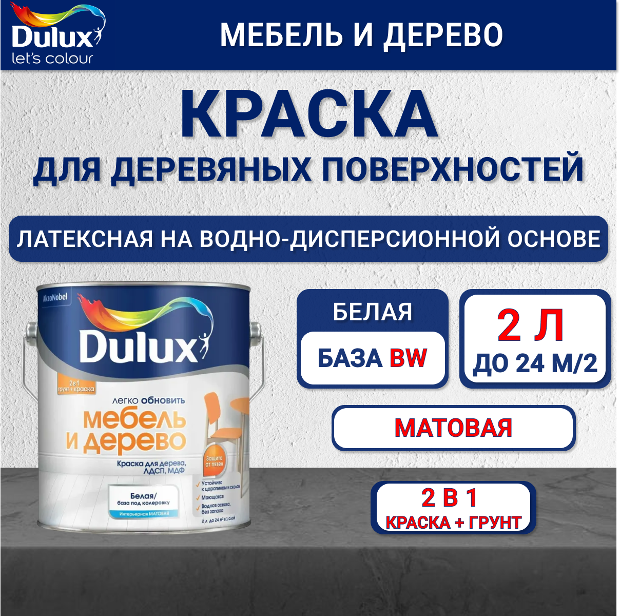 Dulux / Дюлакс Легко Обновить - Мебель и Дерево матовая износостойкая краска на водной основе (2л)