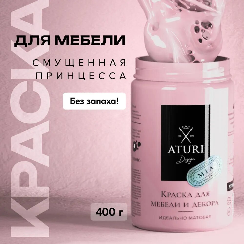 Отзывы на Матовая краска для мебели 0,4 кг без запаха, меловая быстросохнущая Aturi Design Mia. Цвет: Смущенная принцесса, розовый