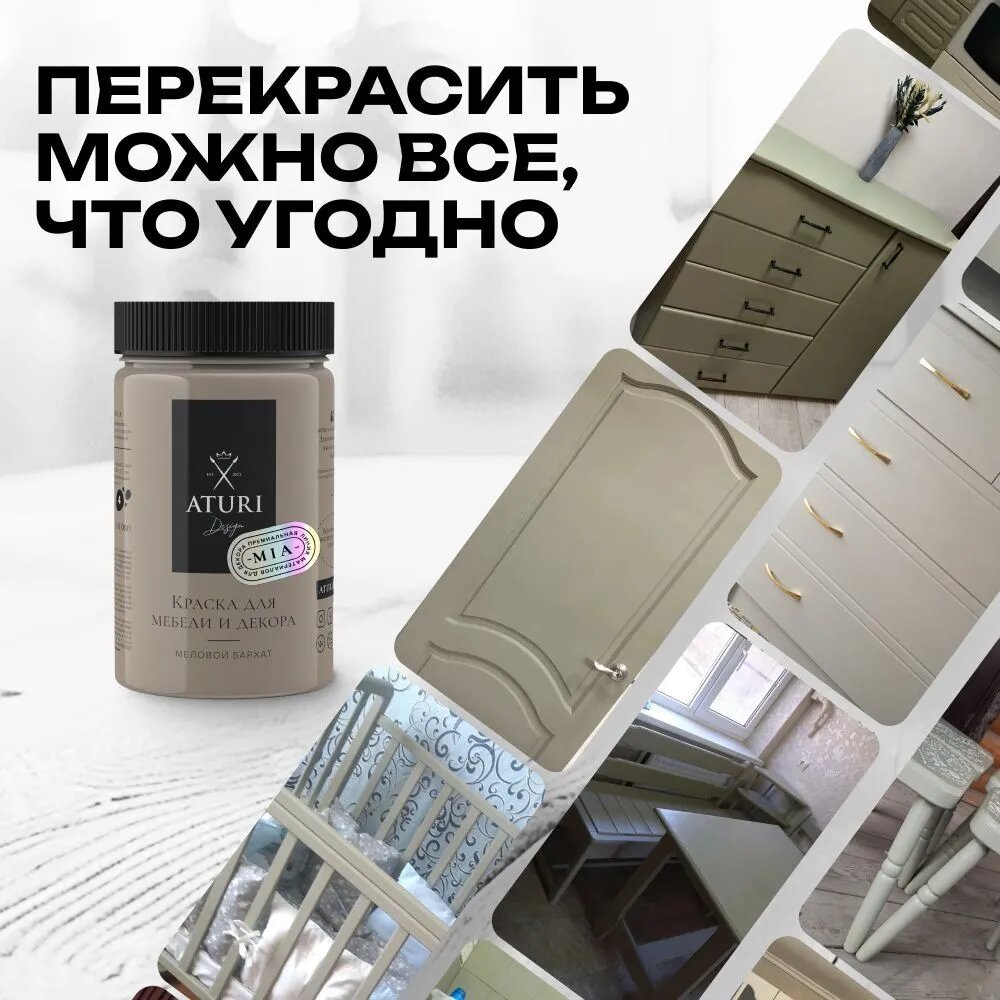 Матовая краска для мебели 0,4 кг без запаха, меловая быстросохнущая мебельная Aturi Design Mia д. Цвет: Сензария 1 055 ₽