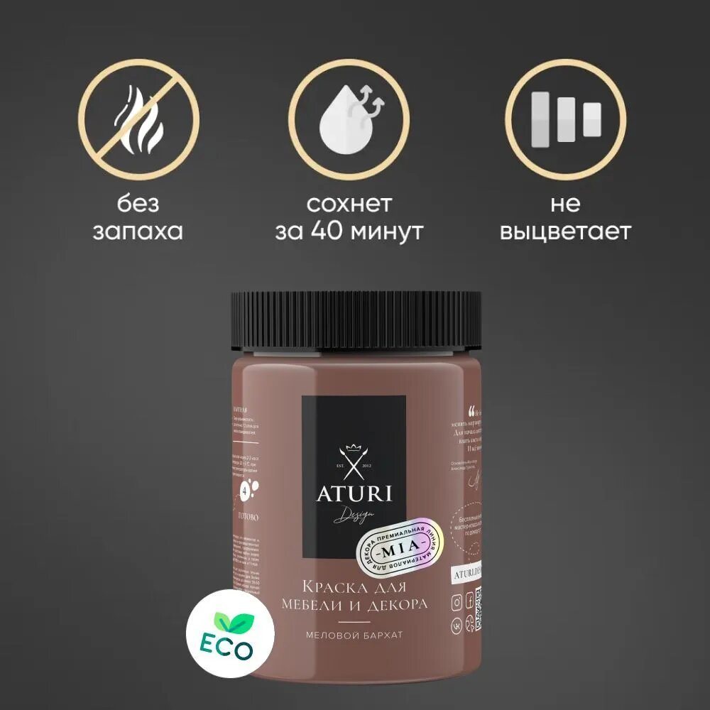 Краска Aturi Design Mia для мебели и декора, меловой бархат; Цвет: Крепкий кофе, 400гр
