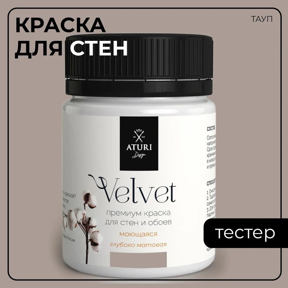 Краска тестер для стен и обоев Aturi Design Velvet Цвет: Тауп, серо-коричневый, 60 гр. Интерьерная, матовая, без запаха информация: