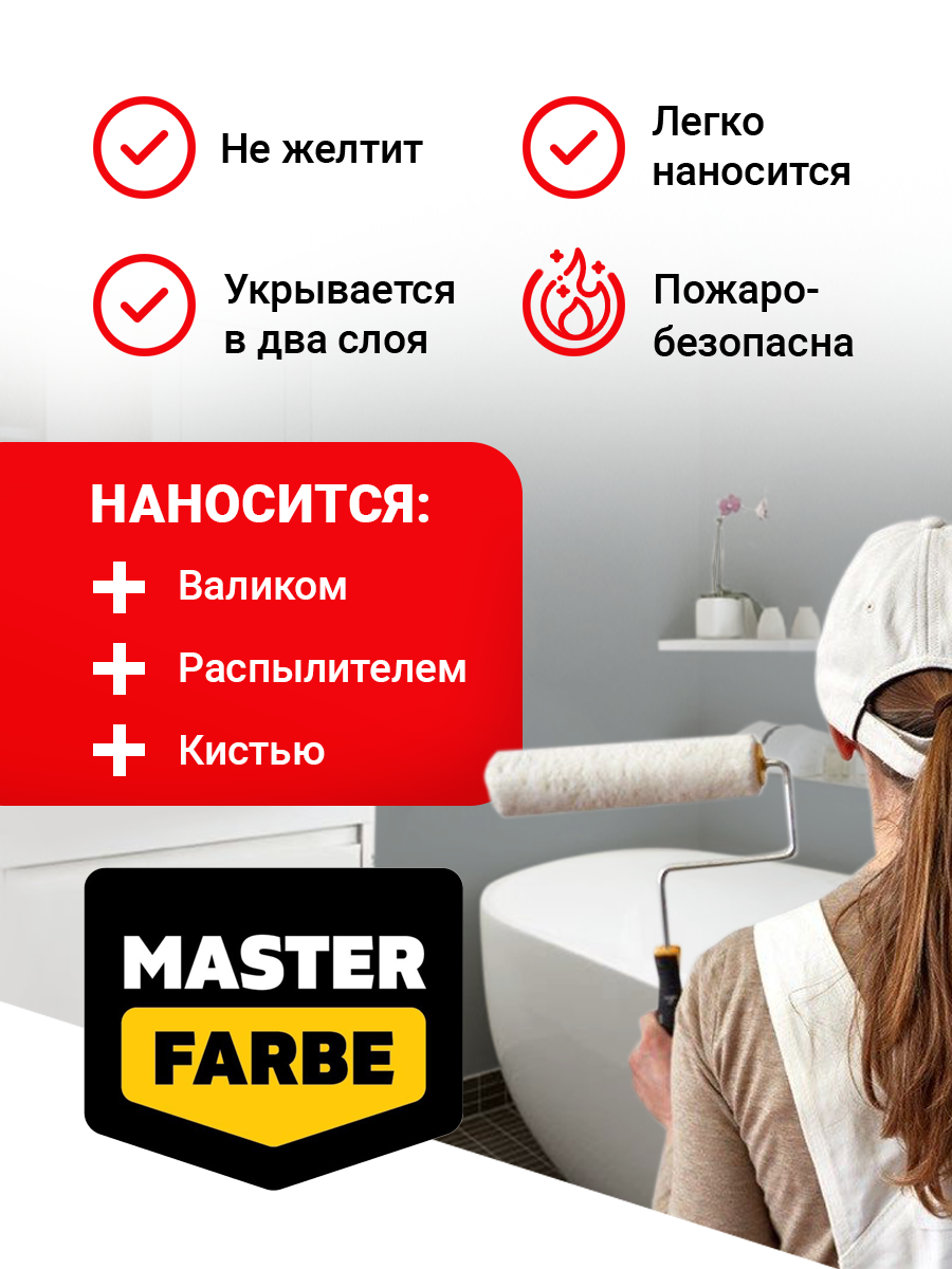 Краска влагостойкая для помещений с повышенной влажностью MASTER FARBE, слоновая кость, 14 кг