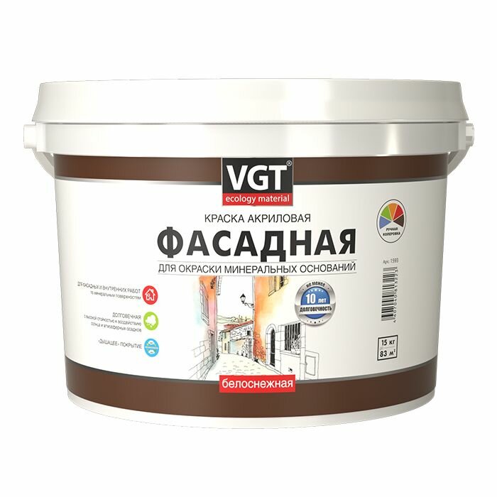 Краска VGT фасадная Белоснежная, ВД-АК-1180, 1,5 кг. информация: