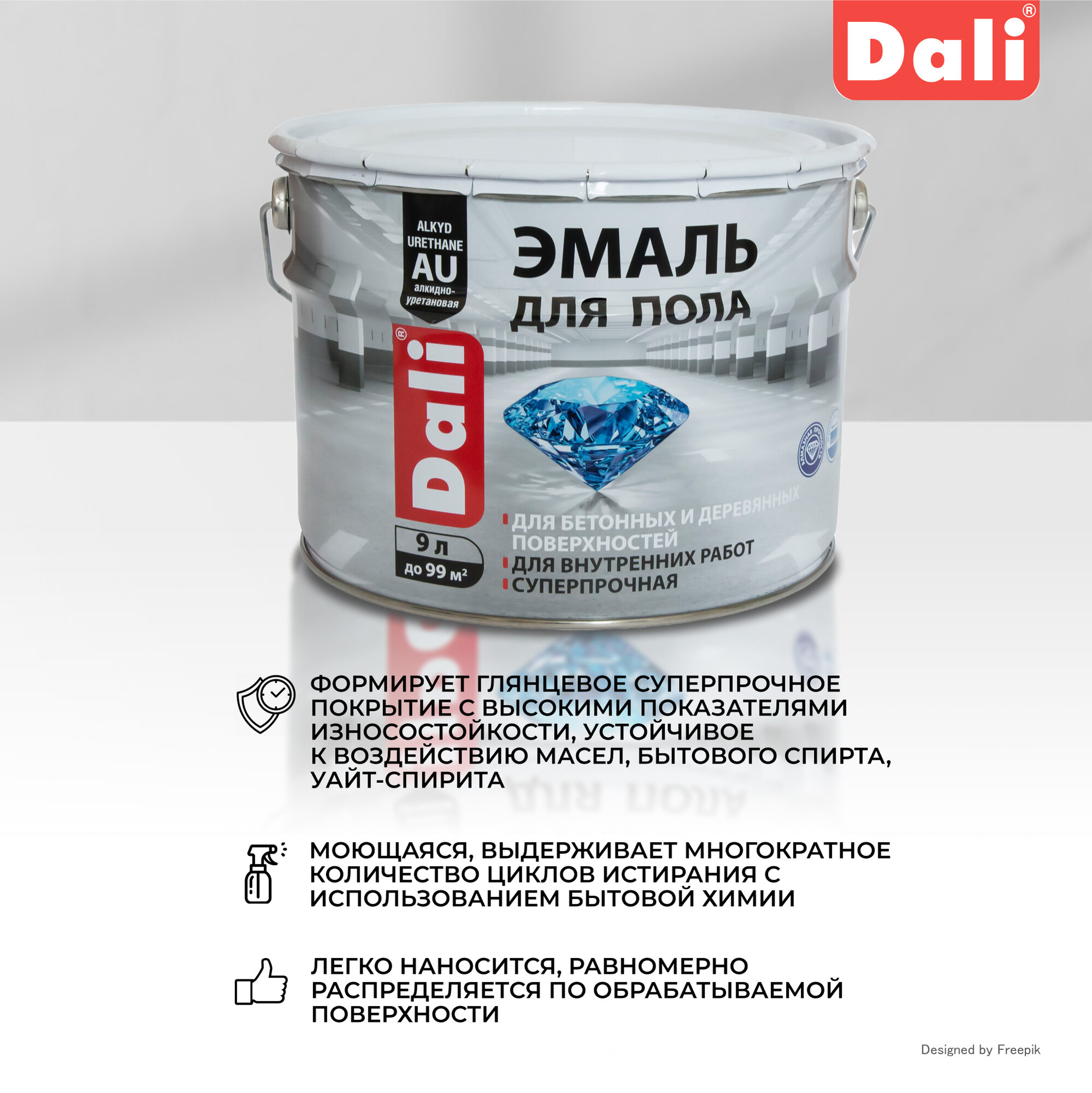 Эмаль Dali для Пола 9л Белая Алкидно-Уретановая для Внутренних и Наружных Работ / Дали для Пола. 7 915 ₽