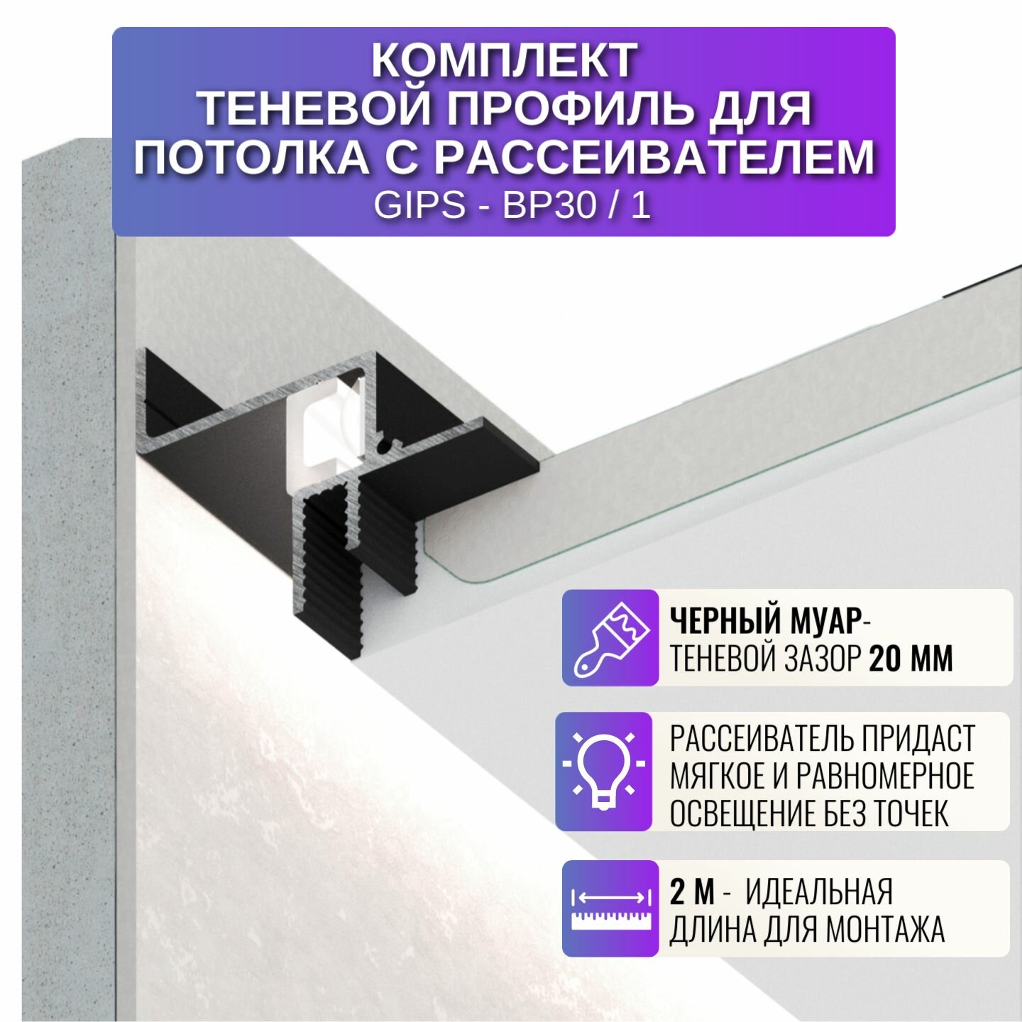 Теневой профиль для потолка из гипсокартона с рассеивателем 2 м, 1 шт, черный информация: