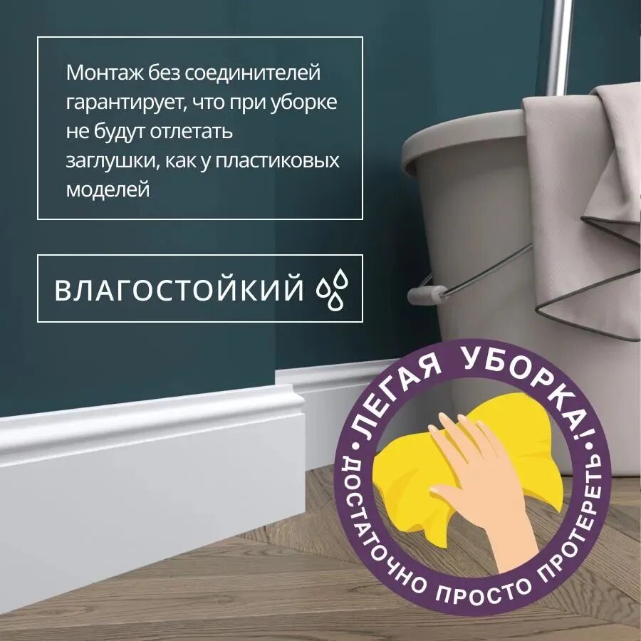 Плинтус Де-Багет напольный ударопрочный Н80 80х13х2000 мм, белый ( 8 штук ) информация: