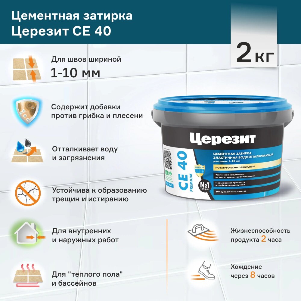 Затирка цементная Церезит CE 40 водоотталкивающая цвет натура 2 кг 727 ₽