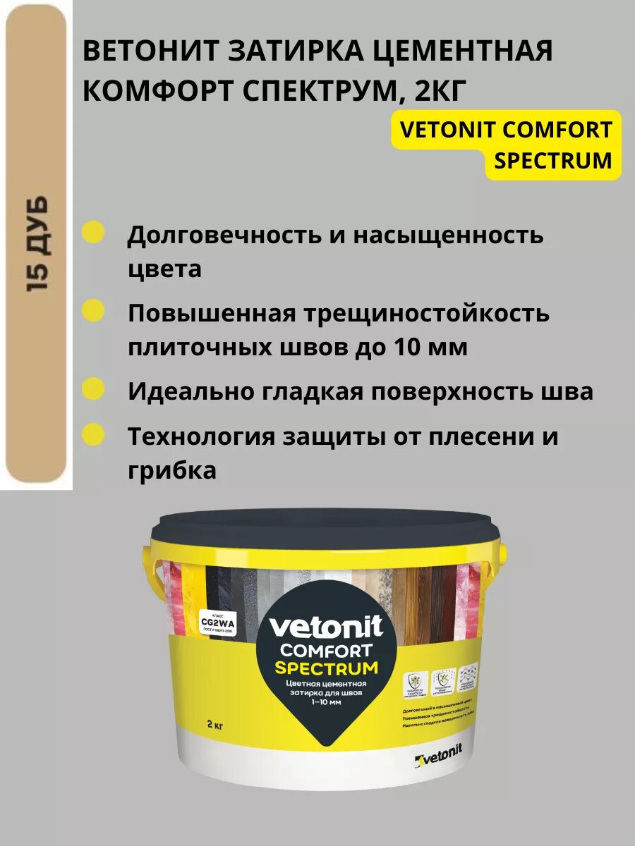 Затирка для швов Vetonit Comfort Spectrum 1-10 мм, цементная 2 кг, 15 дуб 839 ₽