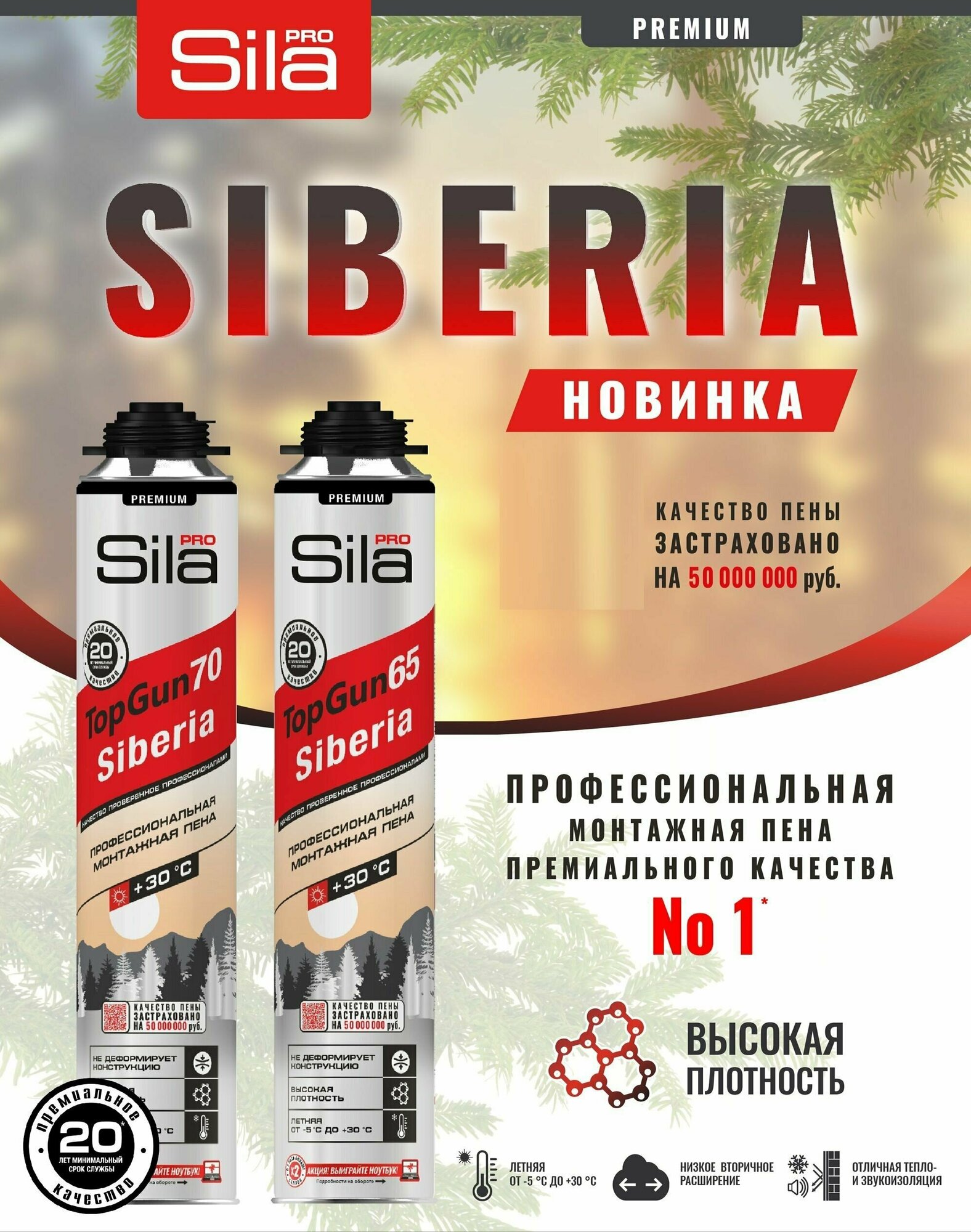 Профессиональная монтажная пена Sila Pro TopGun 65 SIBERIA, летняя, 850 мл, SPTGSBSUM65 информация:
