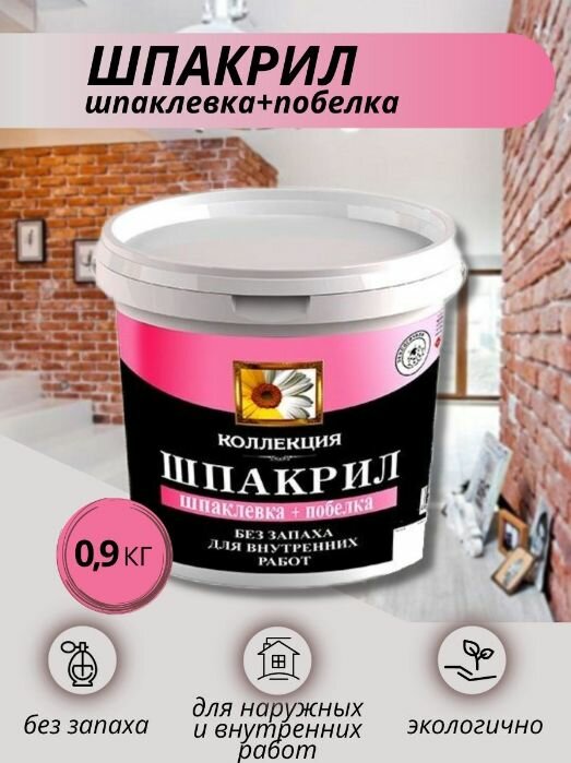 Цементная шпаклевка КОЛЛЕКЦИЯ, для внутренних помещений, 0.9кг информация: