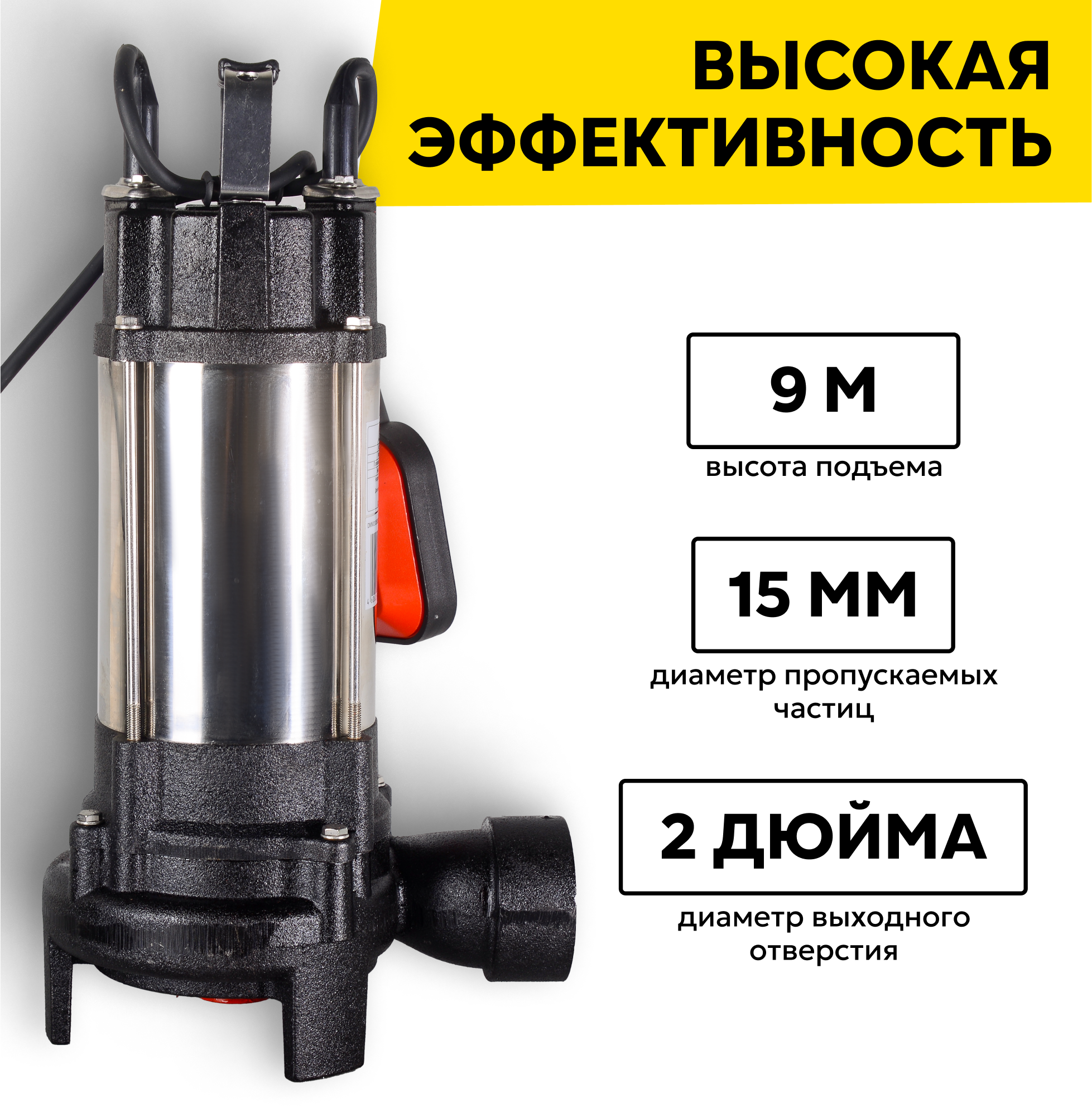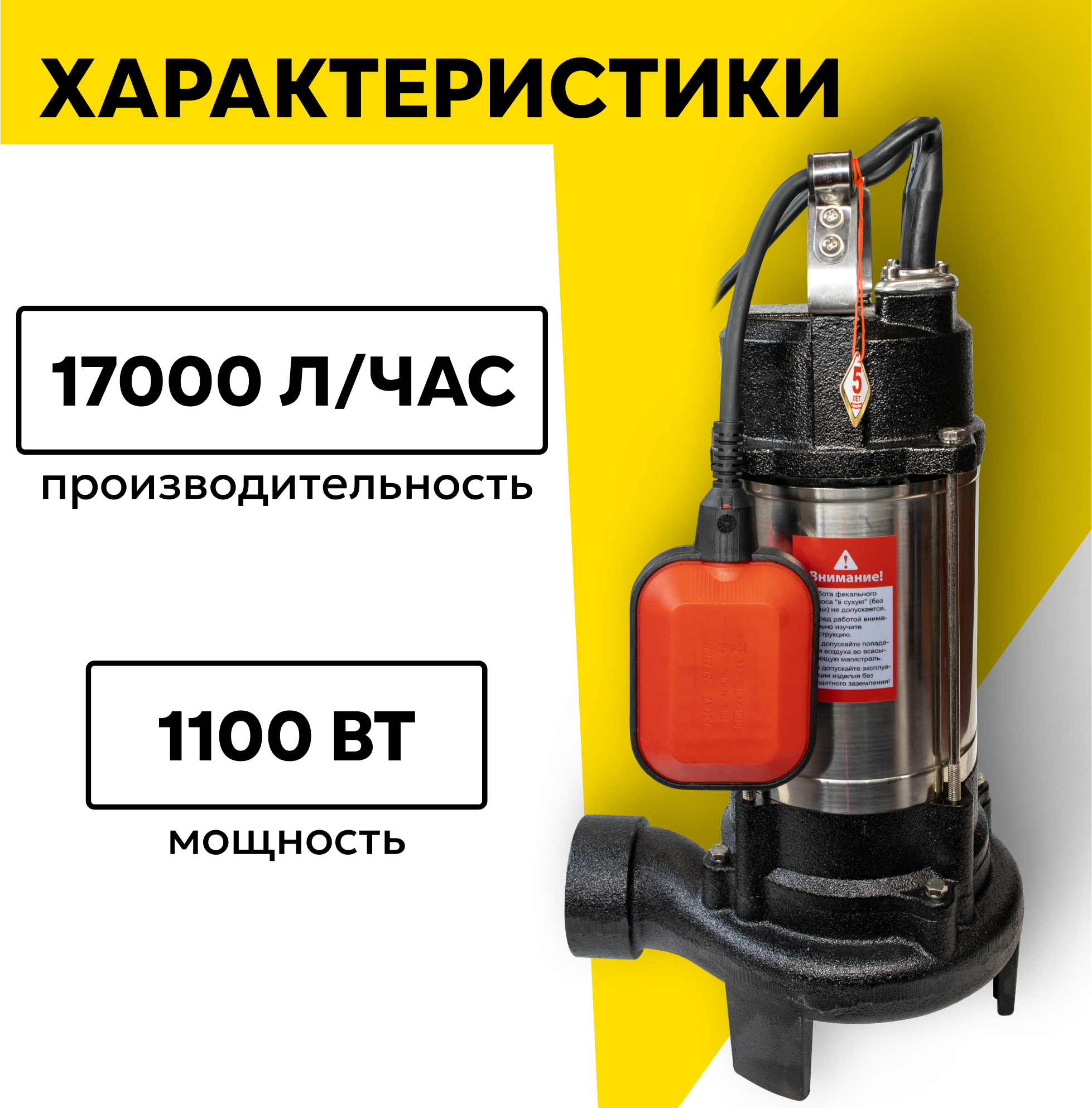 Фекальный насос Ресанта НФ-17000Л, 1100 Вт, высота подъема – 9 м, 17000 л/час, 2” информация: