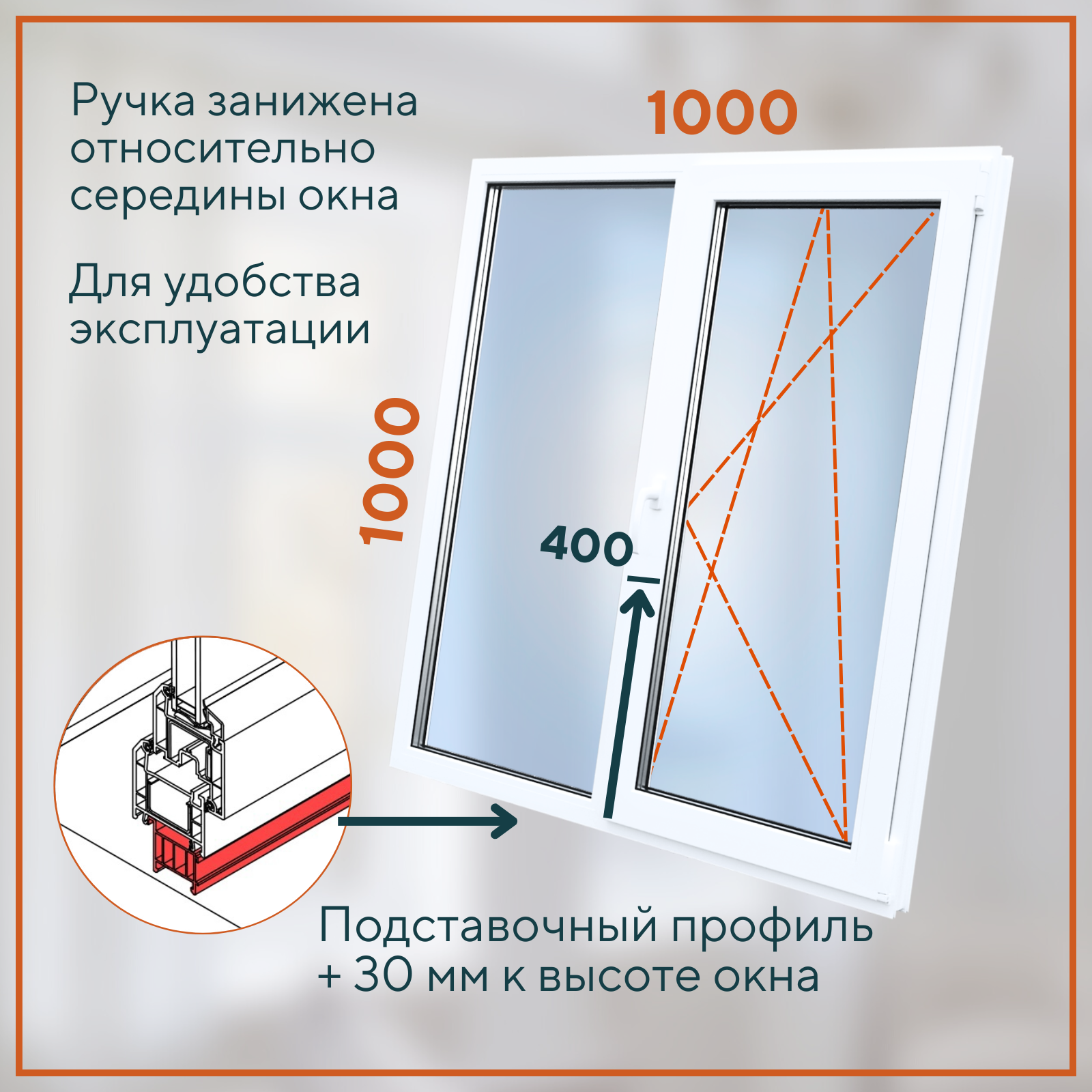 Отзывы на Пластиковое окно 1000х1000 мм (ВхШ) РЕХАУ BLITZ, глухая и поворотно-откидная створки, белое