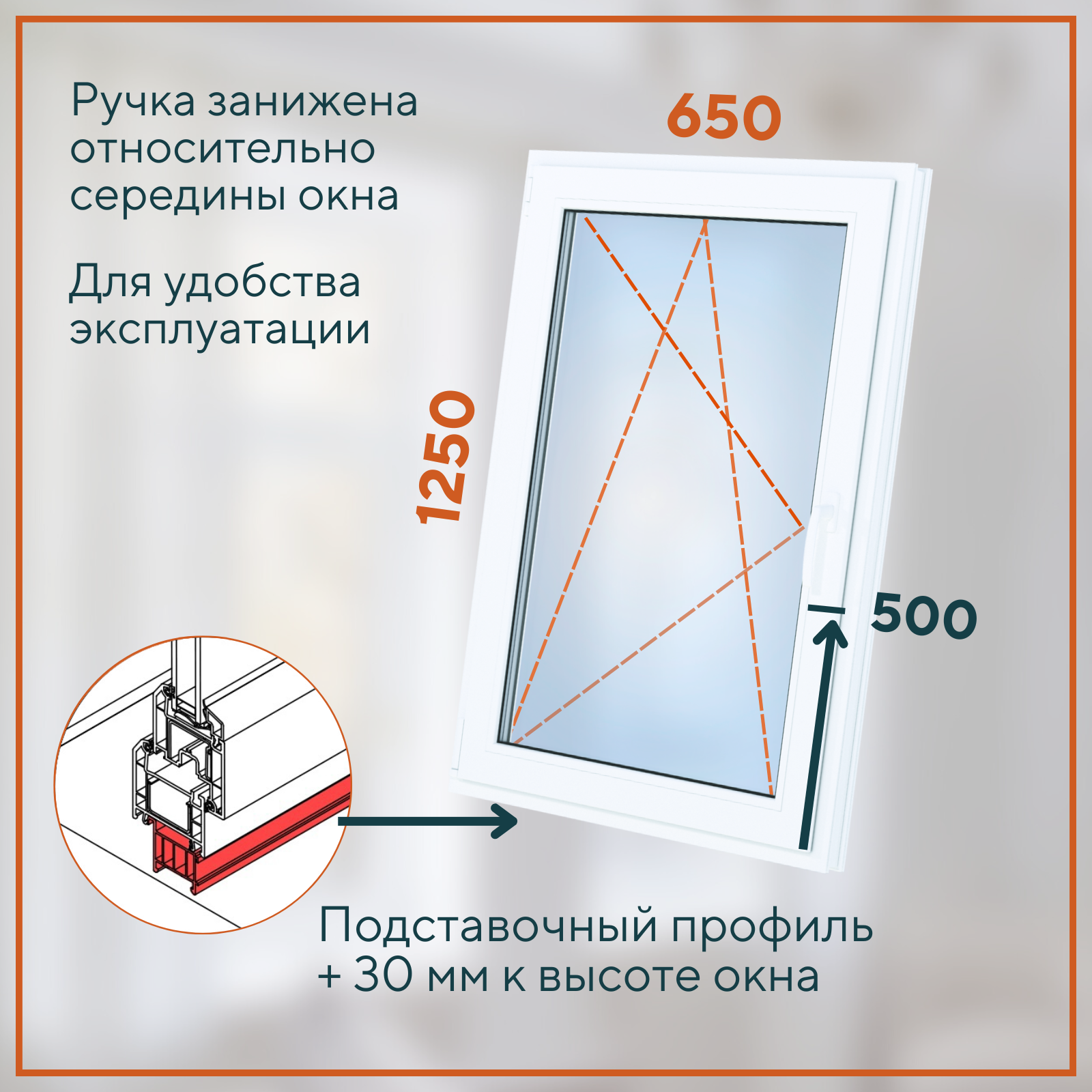 Пластиковое окно 1250х650 мм (ВхШ) РЕХАУ Blitz, поворотно-откидное, белое информация: