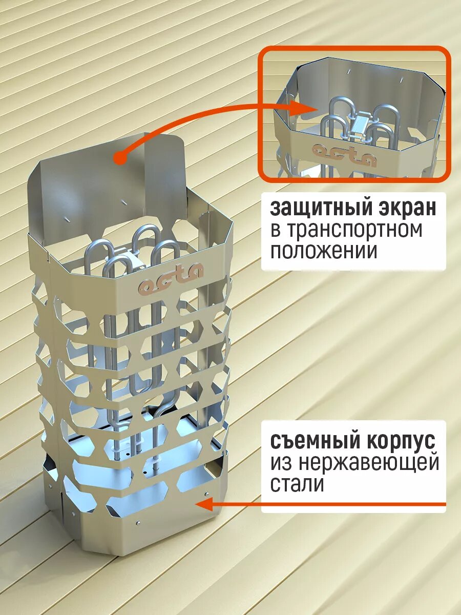 Печь электрическая (электрокаменка) для сауны и бани стэн "Octa" 4кВт, нержавеющая сталь