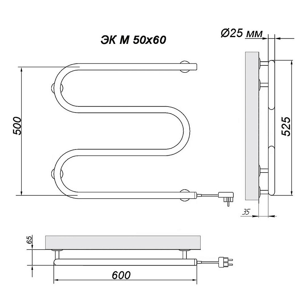 Полотенцесушитель электрический Ника Simple М 50/60 каб хром информация: