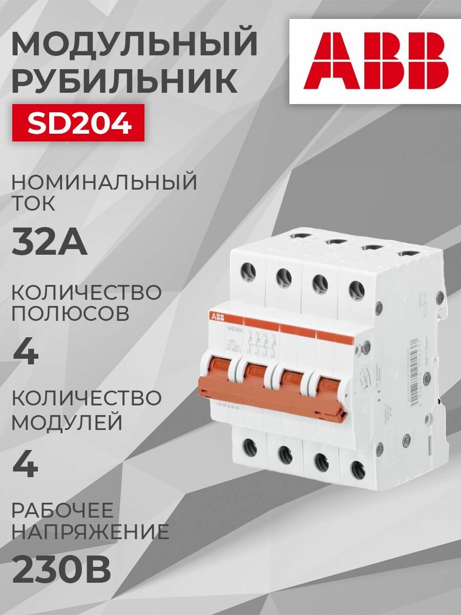 Отзывы на SD204/32 Рубильник 4-полюсный модульный 32А (красный рычаг) ABB, 2CDD284101R0032