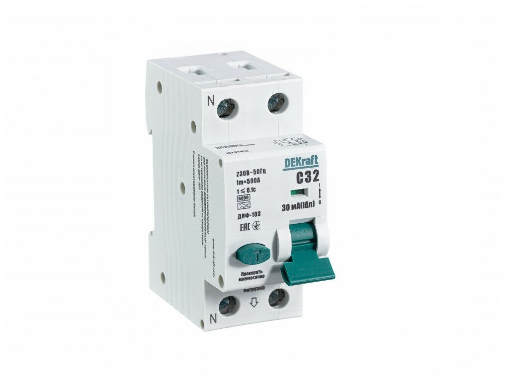 Dekraft Дифференциальный автомат (АВДТ) 1Р+N 32А 30мА тип A х-ка С ДИФ-103 6кА информация: