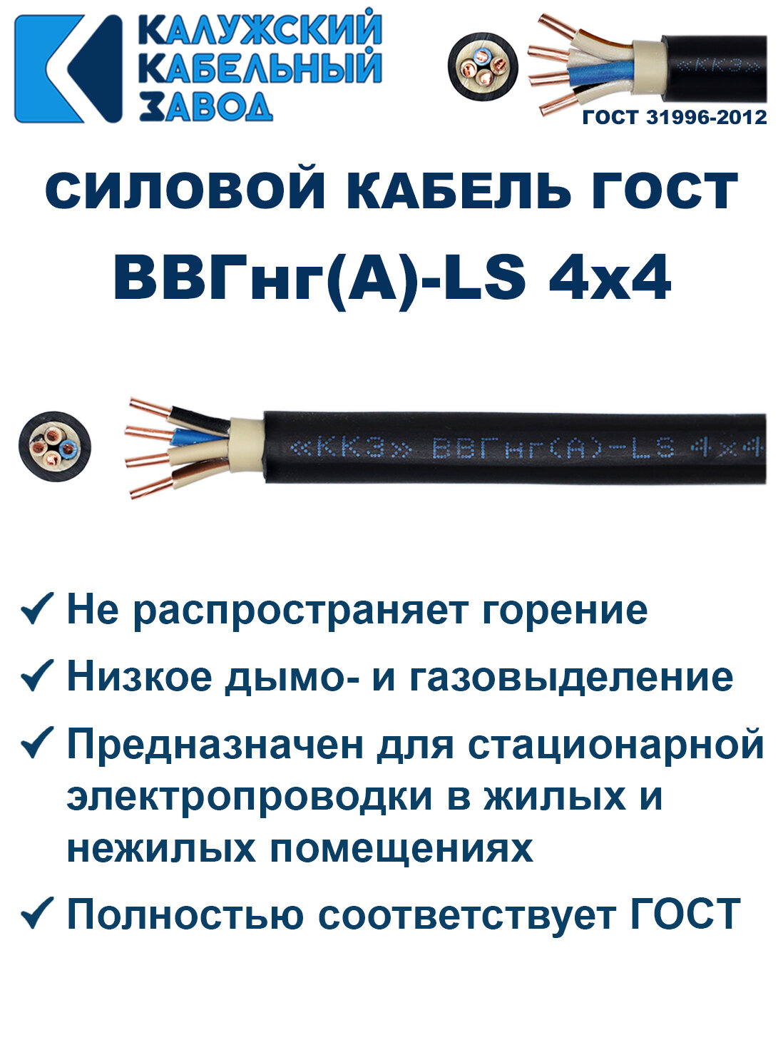 Отзывы на Кабель силовой ВВГнг(А)-LS 4х4 ГОСТ. 7 метров. Калужский кабельный завод