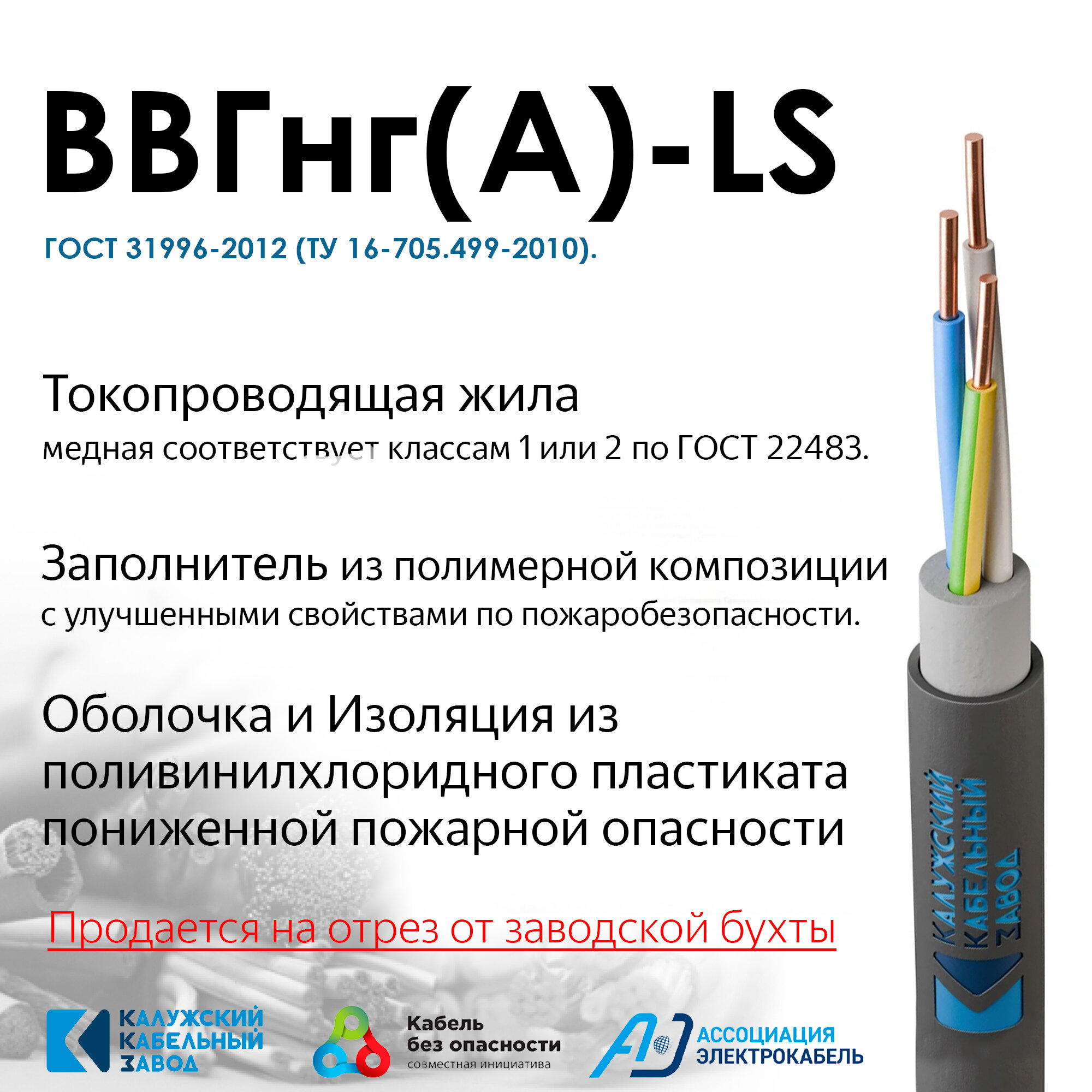 Кабель силовой ВВГнг(А)-LS 4х6 ГОСТ. 10 метров. Калужский кабельный завод 5 205 ₽
