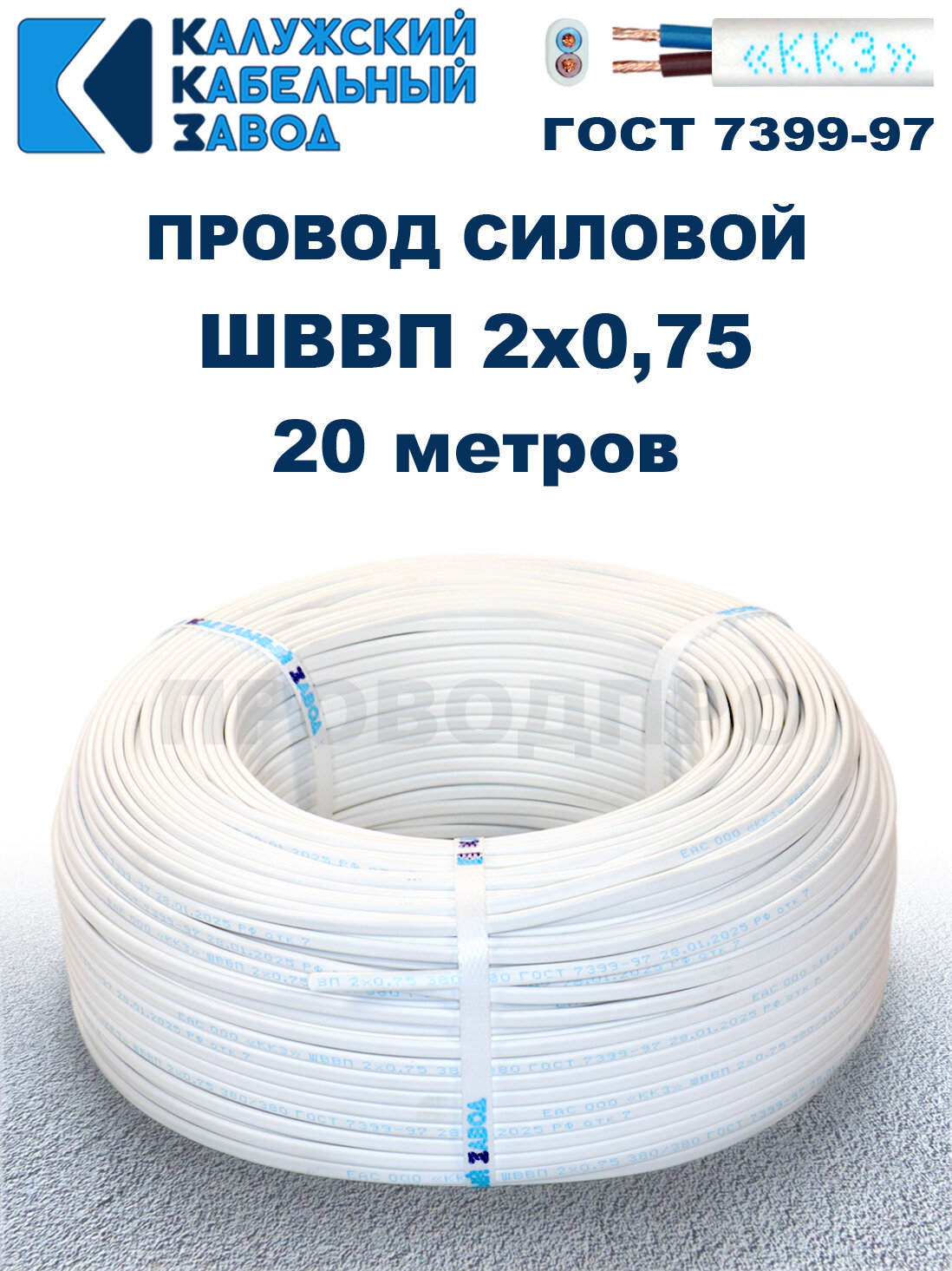 Провод ШВВП 2х0,75 ГОСТ Калужский Кабельный Завод (Белый) 20 метров 940 ₽