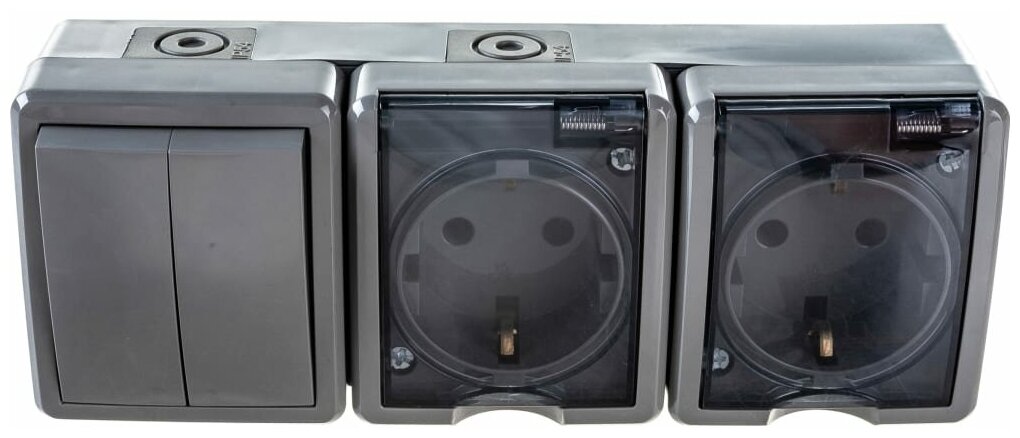 ЭРА Блок Эксперт 11-7602-03 накладной IP65 16А(10AX) 250В серый горизонтальный розетка с выключателем двухклавишн