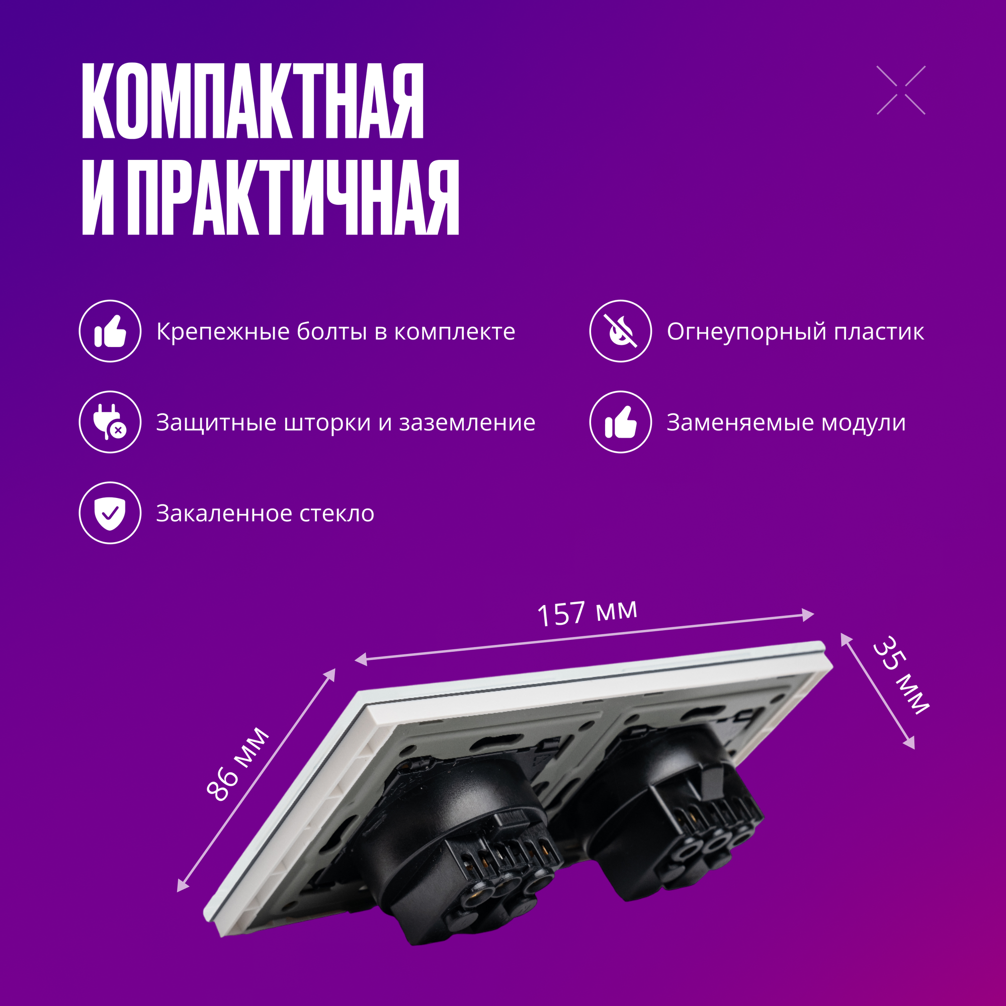 Отзывы на Встраиваемая розетка на 2 поста с заземлением и защитой от детей на 16А двойная стеклянная, белая