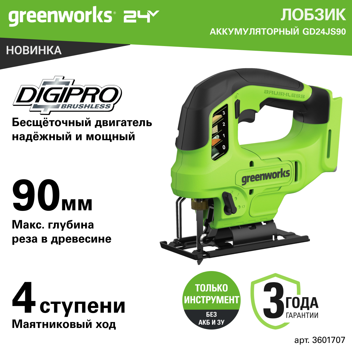 10 цен на Лобзик аккумуляторный Greenworks Арт. 3601707, 24 V, бесщеточный, без АКБ и ЗУ